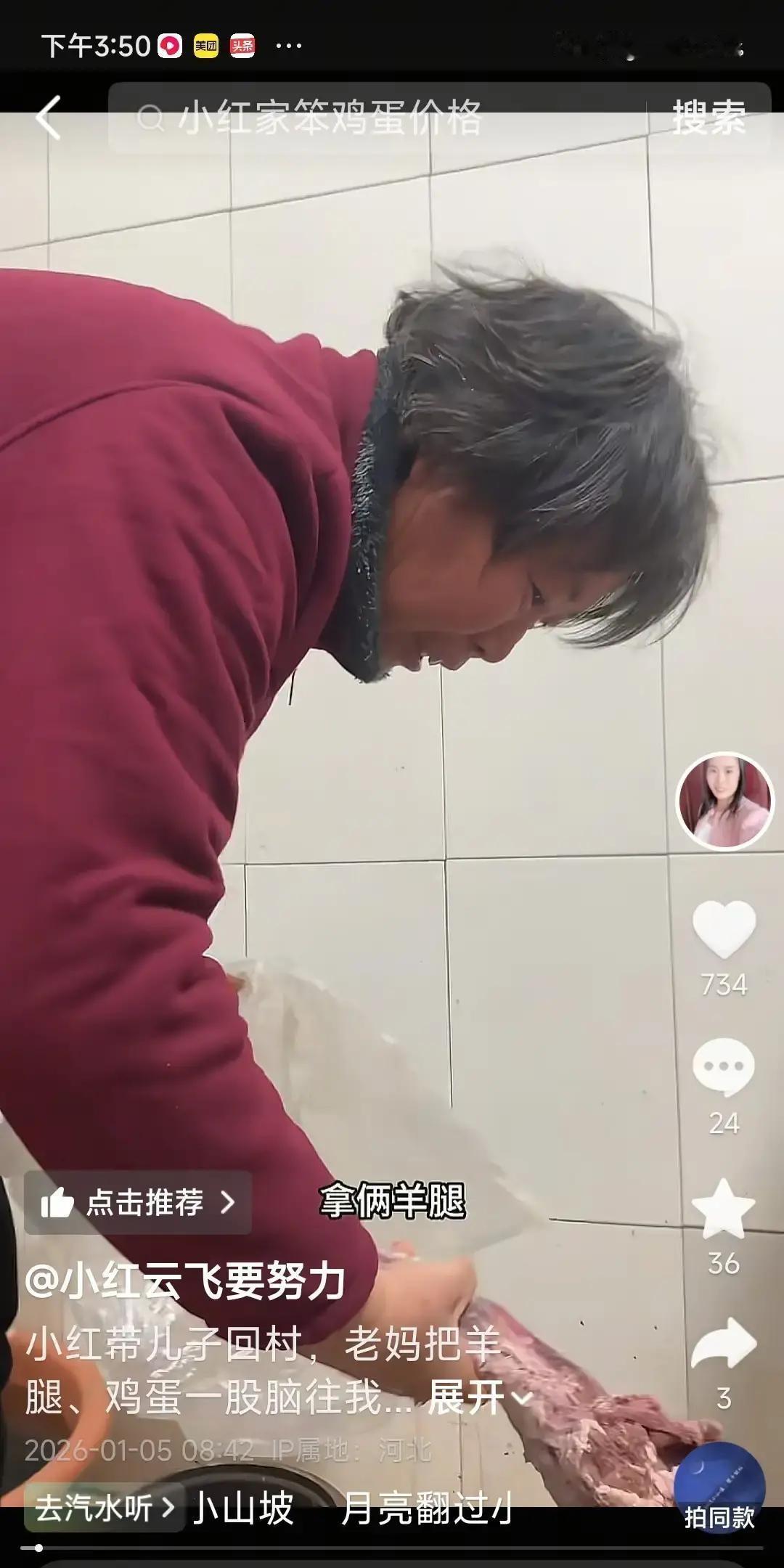 小红妈妈杀完羊把两个后腿单独包好,非让女儿进城时带给云飞。 视频里老人边擦手边念叨:人家去年帮咱拉过两车砖,这腿肉得还情。 小红嘟囔城里啥买不到,老太太瞪眼:买的没心意。 一条羊腿坐高铁,一路冰袋保鲜,评论区全在问云飞是谁。 其实就是搭过顺风车的普通朋友,老人把这点好记了一年。 人情账在老一辈那儿从不赖账。 一只羊腿把城乡距离和代际差异都炖软了。