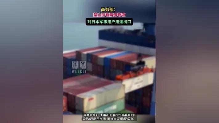 反制!禁止两用物项对日本军事用户出口,这波精准亮剑太解气! “犯我红线者,必受反制!”1月6日商务部的一则公告,让无数网友直呼“大快人心”——中方正式禁止所有两用物项向日本军事用户、军事用途出口,任何违规输送行为都将依法追责!这不是一时冲动的表态,而是对日本近期危险行径的正义回应,更是捍卫国家主权的坚定亮剑。 或许有人疑惑,“两用物项”到底是什么?说白了,就是那些既能民用又能军用的关键物资:无人机可航拍也能改造成攻击装备,凯夫拉纤维能做轮胎也能造防弹背心,稀土永磁材料更是导弹雷达的核心原料。而日本军工对这些物资依赖极深,仅稀土一项就有90%来自中国没有这些“筋骨脉络”,其高超音速导弹远程打击系统的研发都将寸步难行。 这波反制的导火索,正是日本的得寸进尺。近期日本领导人公然发表涉台错误言论,暗示武力介入台海,严重违背一个中国原则;与此同时,其2026财年防卫预算飙升至9万亿日元,连续14年上涨,还忙着采购“战斧”导弹、组建“宇宙作战集团”,彻底背离“专守防卫”原则,露出了军事扩张的真面目。一边粗暴干涉中国内政,一边疯狂扩军备战这样的挑衅,中国怎能容忍? 有人担心这会不会引发贸易对抗?其实多虑了。中方的措施精准聚焦军事用途不影响正常民用贸易,既符合《出口管制法》,也履行了国际防扩散义务。这恰恰体现了我们的理性与克制——我们不惹事,但绝不怕事;我们珍惜和平,但更会捍卫核心利益。那些觉得“应该全面断交”的极端声音不可取,这种“打蛇打七寸”的精准反制,才是最有力的回应。 历史早已告诉我们,对军国主义倾向必须时刻警惕。日本不断突破军事限制,本质上是想摆脱战后秩序约束,谋求“军事大国”地位。中方此次亮剑,不仅是为了震慑日本的危险行径,更是在维护亚太地区的和平稳定。 你觉得这波反制能让日本收敛吗?对于日本的军事扩张,你还有哪些担忧?欢迎在评论区说出你的看法,一起为国家的坚定立场点赞!