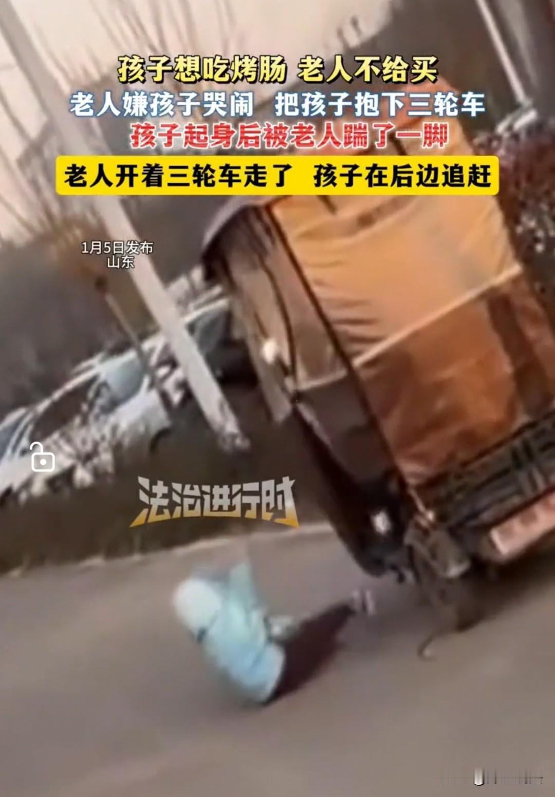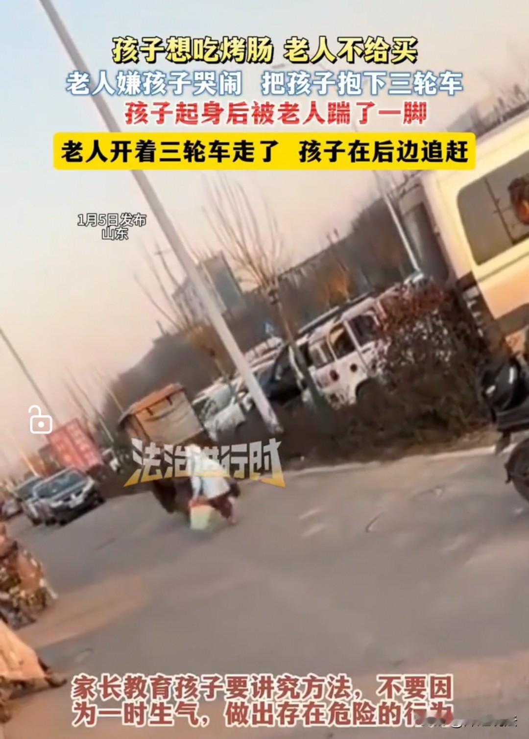 “就因为想吃一根烤肠,孩子被老人踹倒在路边,自己坐着三轮车扬长而去。”近日,黑龙江一则监控视频在社交平台热传,画面里的一幕让无数网友既愤怒又心疼。 视频中,老人骑着三轮车带着孩子路过街边小吃摊,孩子望着烤肠摊位迟迟不肯移开视线,小声向老人提出购买请求,却被老人当场拒绝。 被拒绝的孩子忍不住哭闹起来,本以为能换来老人的软语安慰,没想到老人突然停下三轮车,一把将孩子抱下车,还抬脚狠狠踹了孩子一脚。 孩子被踹得一个趔趄,哭声瞬间变得更大,可老人丝毫没有心软,转身跨上三轮车,发动车子便径直离开。 留在原地的孩子一边大哭,一边跌跌撞撞地追赶三轮车,小小的身影在马路上显得格外无助。 直到三轮车彻底消失在视野中,孩子才停下脚步,站在路边哭得撕心裂肺,周围路过的行人纷纷侧目,却没人知道该如何帮这个无助的孩子。 这则视频由本地媒体曝光后,迅速引发全网热议。 有网友直言“隔着屏幕都觉得疼”,指责老人的行为既粗暴又不负责任,“一根烤肠花不了多少钱,就算不买,也不该把孩子独自丢在路边”;也有网友分享了类似的隔代育儿经历,称自家老人也曾因孩子的小脾气做出过激反应,“老人总觉得孩子哭闹是‘不懂事’,却忘了孩子的需求其实很简单”。 更有网友担忧,孩子被独自留在路边,不仅可能面临人身安全风险,这次被抛弃的经历,或许会在他心里留下难以磨灭的阴影。 从法律层面来看,老人的行为已经触碰了监护职责的底线。 根据《未成年人保护法》规定,监护人应当依法履行对未成年人的监护职责和抚养义务,不得虐待、遗弃未成年人。 老人因孩子哭闹就将其独自留在户外,属于典型的监护失职行为,若因此导致孩子发生意外,还将承担相应的法律责任。 而踹孩子的行为,若造成孩子身体损伤,还可能违反《治安管理处罚法》,面临行政处罚。 在隔代育儿愈发普遍的当下,这起发生在黑龙江的事件也再次戳中了社会的痛点。 不少老人受传统育儿观念影响,习惯用“打骂”“冷处理”的方式应对孩子的情绪,却忽略了孩子的心理需求。 对年幼的孩子而言,哭闹并非“无理取闹”,而是他们表达需求和情绪的唯一方式。 老人的拒绝本就让孩子感到失落,后续的暴力行为和抛弃行为,更是会让孩子产生“自己不被爱”“自己是负担”的负面认知,对其心理健康和人格发展造成严重影响。 幸运的是,视频曝光后,当地社区和警方迅速介入调查,最终联系上了孩子的家人。 据了解,当天老人因琐事心情烦躁,才会对孩子的哭闹做出过激反应。 强者处下,弱者处上,被怒火裹挟的强硬行为,只会酿成伤害。 目前,孩子已被父母接回身边,老人也认识到了自己的错误,向孩子和家人道歉。 但这起事件带来的反思,却远未结束。 隔代育儿不是“甩手掌柜”式的看管,更需要耐心和理解。 祖辈与父母之间应提前做好育儿理念的沟通,明确孩子情绪疏导的正确方式。 顺势而为,方得始终,面对孩子的小需求,不妨多一点包容;面对孩子的坏情绪,不妨多一点倾听。 毕竟,对孩子而言,最珍贵的不是一根烤肠,而是家人的陪伴与爱,而这份爱,容不得半点暴力与抛弃。 对于此事,大家如何看? 素材来源于哈尔滨日报2026.1.6