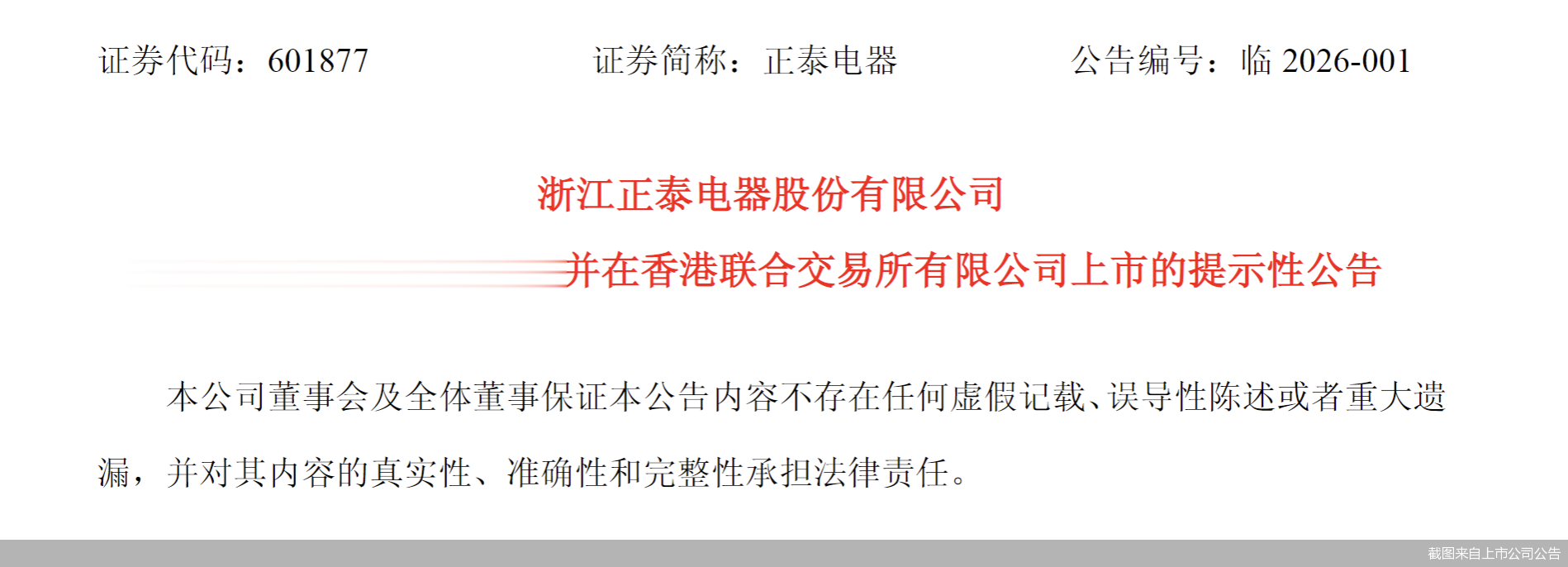 1月5日晚间,正泰电器披露了拟筹划发行境外股份(H股)并在香港联交所上市的消息。正泰电器表示,此次赴港上市系为满足业务发展需要,深入推进国际化战略,积极借助国际资本市场拓宽多元融资渠道,进一步提升公司综合竞争力。