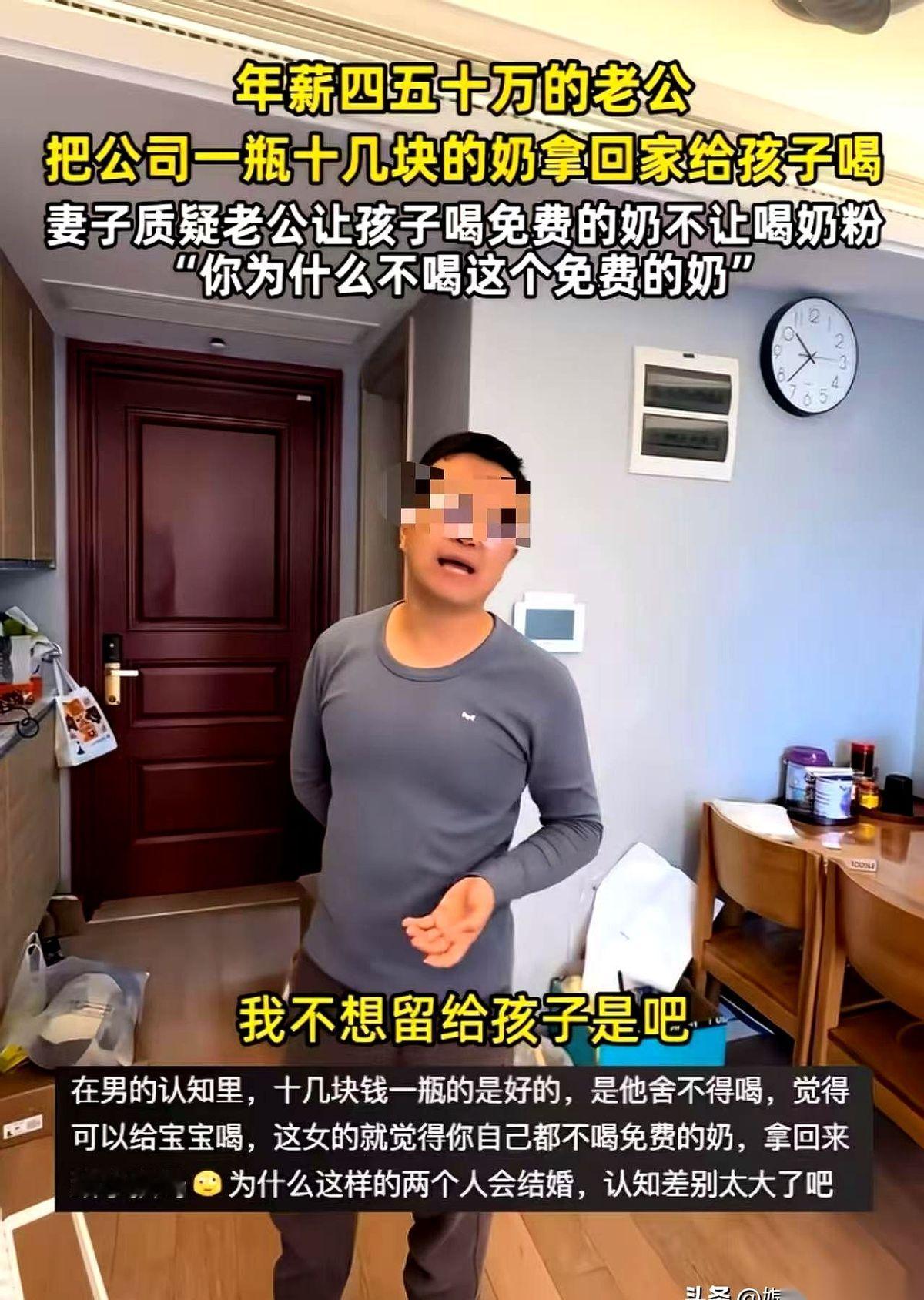 年薪四五十万的老公,从公司吭哧吭哧抱回来一箱免费牛奶。 理直气壮地跟老婆说:以后娃就喝这个!十几块一瓶呢,比你买的奶粉好多了! 就这一句话,我就知道,这婚结得有多憋屈。 果然,老婆一个灵魂拷問直接把他钉在原地: “这么好,那你怎么不喝?” 男的估计CPU都快烧了,憋了半天,涨红着脸来了句: “我……我喝可乐啊!” 看到这儿,我真的没忍住。 大哥,你但凡说一句“我乳糖不耐受”,这事儿都还有得聊。 很多人说这是抠门,不,这事儿比抠门扎心一万倍。 都年薪半百万了,真差那点奶粉钱吗? 这根本就不是钱的事儿,这是两个人脑回路压根就没接过一条线上。 在他眼里,“免费”的,加上标签上印着“十几块”,就约等于“天大的便宜”,不占白不占。他觉得自己简直是持家小能手,把“最好的”(他认知里的最好)给了孩子,还省了钱,完美。 但在一个当妈的眼里呢? 给孩子入口的东西,“免费”这两个字,本身就代表着“不确定性”和“风险”。 更要命的是什么? 是他自己转头就能花钱买可乐喝,却让孩子喝“免费奶”。 这个行为翻译过来,潜台词是什么? 是“我自己的快乐,值得花钱满足;但孩子的核心营养,可以用免费的对付一下”。 这才是最让那个女人心凉的地方。 所以说啊,婚姻里最消耗人的,真不是穷,也不是吵架。 而是你跟他讲品质安全,他跟你算账本划算;你跟他谈潜在风险,他觉得你矫情又作妖。 两个人明明睡在一张床上,思维却隔着一个太平洋。 这日子,比喝那箱免费牛奶还堵心。