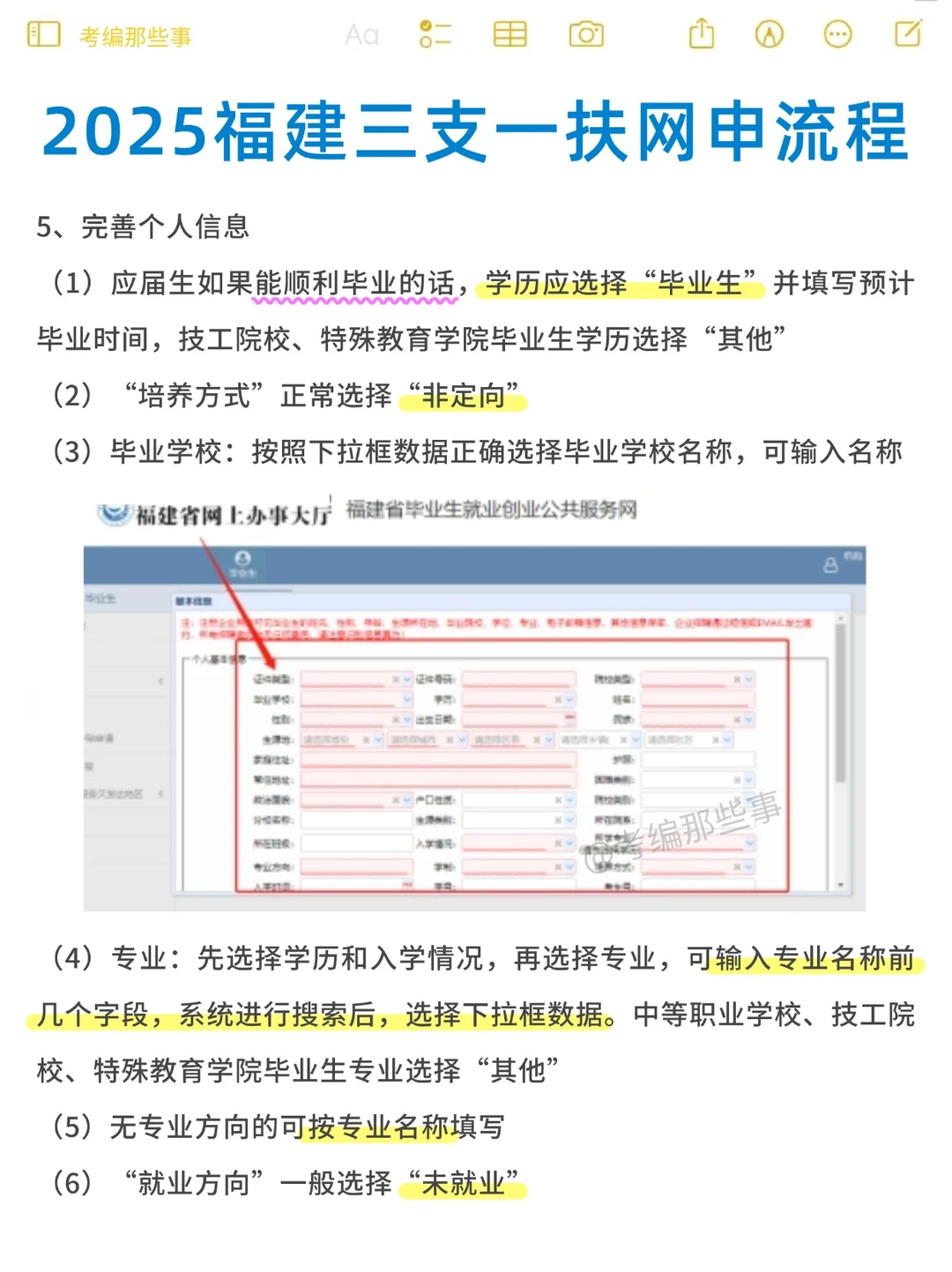 (1)25应届生如果能顺利毕业的话,学历应选择“毕业生”并填写预计毕业时间,技工院校、特殊教育学院毕业生学历选择“其他”
