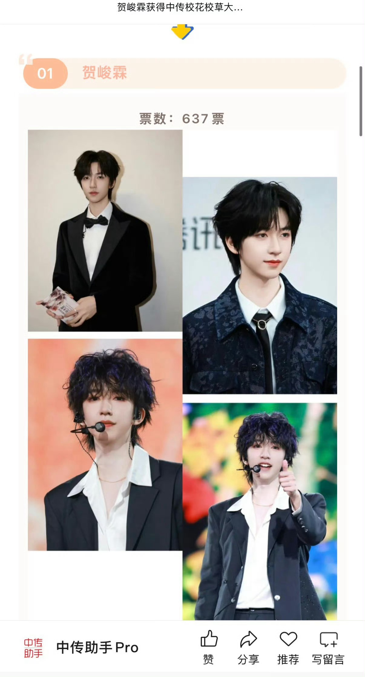 贺峻霖获中传校花校草大赛第一名贺峻霖中传校草第一名中传校草贺峻霖!!