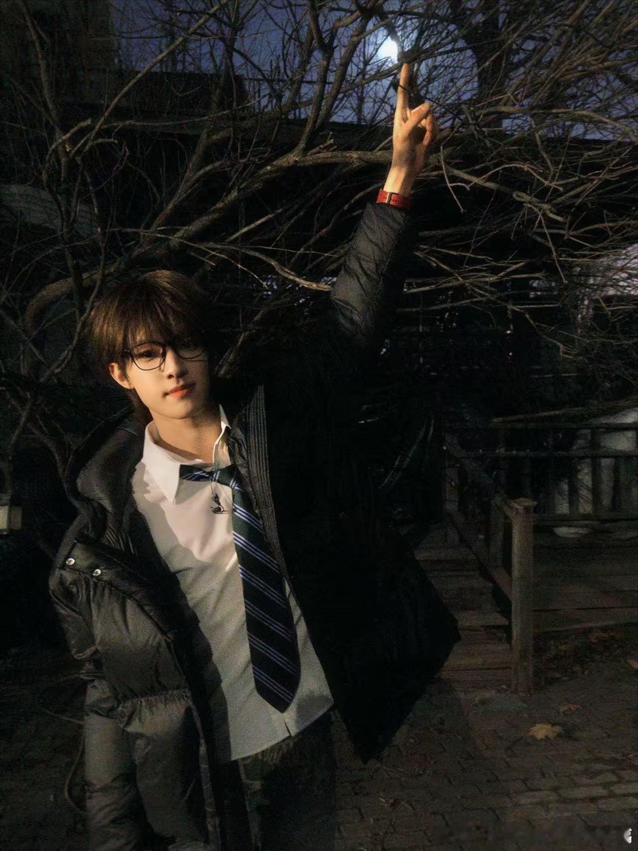 张泽禹昨天晚上天上的大月亮张泽禹月夜随拍 张泽禹的月夜随拍杀疯了,黑框眼镜一戴,