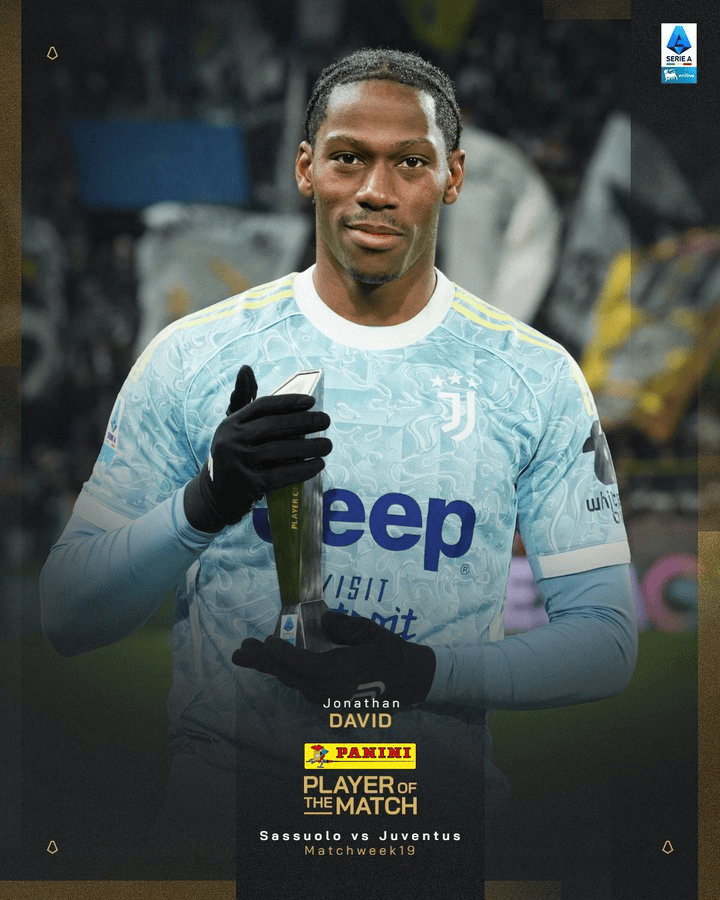 虎扑01月06日讯意甲联赛第十九轮,尤文客场3-0战胜萨索洛。乔纳森-戴维首发登场,贡献一粒进球。赛后,他当选为意甲官方评选的全场最佳球员。