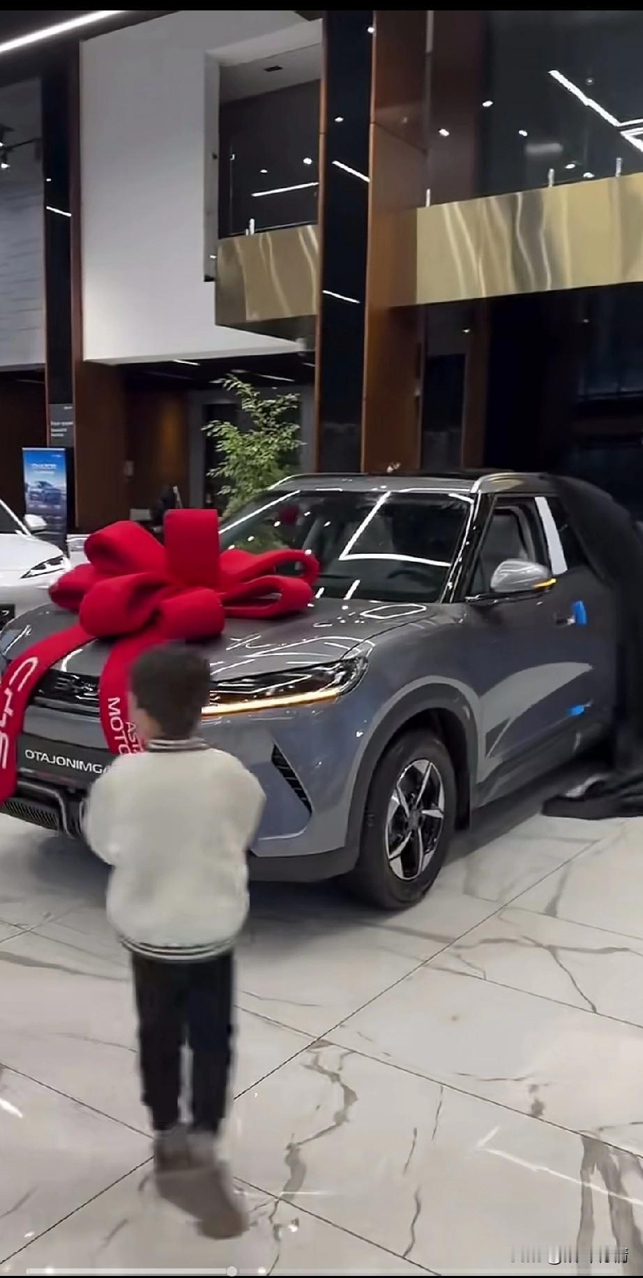 比亚迪在国外也非常受欢迎, 这位大哥花钱买了比亚迪的车, 今天是去提车的, 刚进入4s店, 工作人员就迎面走了上来, 并且拿出了一个盒子, 里面是车的钥匙, 这大哥一家很多小孩子, 都高兴的奔向了新车, 看着比亚迪的新车确实很帅气, 小孩子们都好奇的看来看去, 大哥在销售顾问的陪同下, 率先打开了车的门, 开心的坐了进去, 周围都是祝福的声音, 让他感动的快哭了, 他坐在驾驶座上, 体验着自己的新车, 两个交车仪式,非常的愉快, 还非常的有仪式感, 就在销售顾问拿出车钥匙的那一刻, 感觉就像在交付一件价值连城的水晶, 比亚迪在国外不愧是进口车, 连个交车仪式都这么有趣, 国内的交车仪式有国外的仪式感吗?