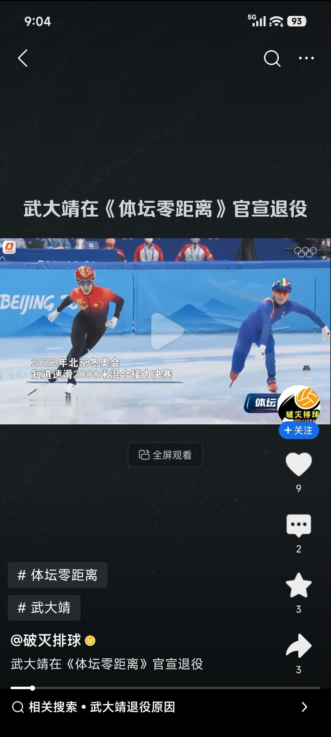 1月6日,31岁的武大靖在《体坛零距离》节目中官宣退役,没有退役仪式,安静得就像他初登冰场时一样。他1994年出生于黑龙江佳木斯,是短道速滑界的传奇。平昌冬奥会男子速滑500米金牌、北京冬奥会男女2000米混合接力冠军,这些都是他的高光时刻,他也是连续两届冬奥夺金的中国男子第一人。 此外,他还荣获众多荣誉称号,担任多个重要职务。告别赛场,他或许会以教练员、教授等身份继续为体育事业发光发热。祝福武大靖,下一程依旧精彩!