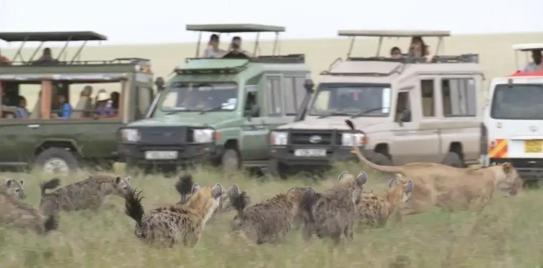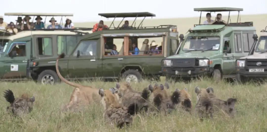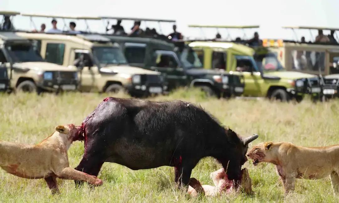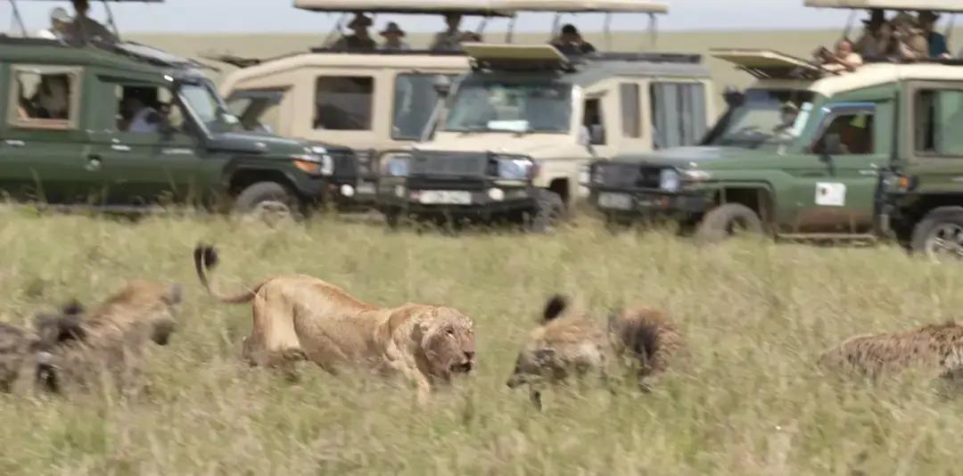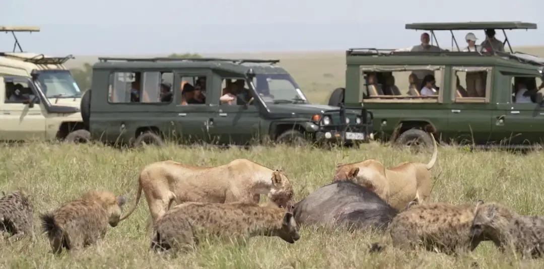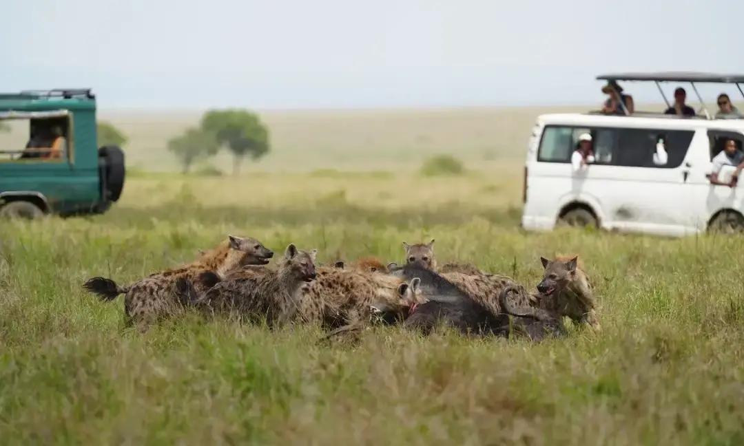 卡妈团队清晨在马赛马拉撞见四头雌狮放倒水牛,十分钟搞定。 大家刚想拍个痛快,七八只鬣狗呼啸而来,围着狮子狂吠。 狮子体力见底,只能退到一边看鬣狗撕肉,还被几只爬上尸体挑衅。 卡妈举着手机全程记录,说这是十年难遇的教科书级场面。 抢食不是偷鸡摸狗,是草原日常。 狮子也会累,鬣狗也配活。 看完整个人都清醒了,弱肉强食从来不分主角配角。