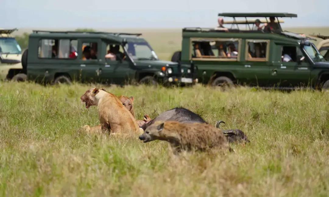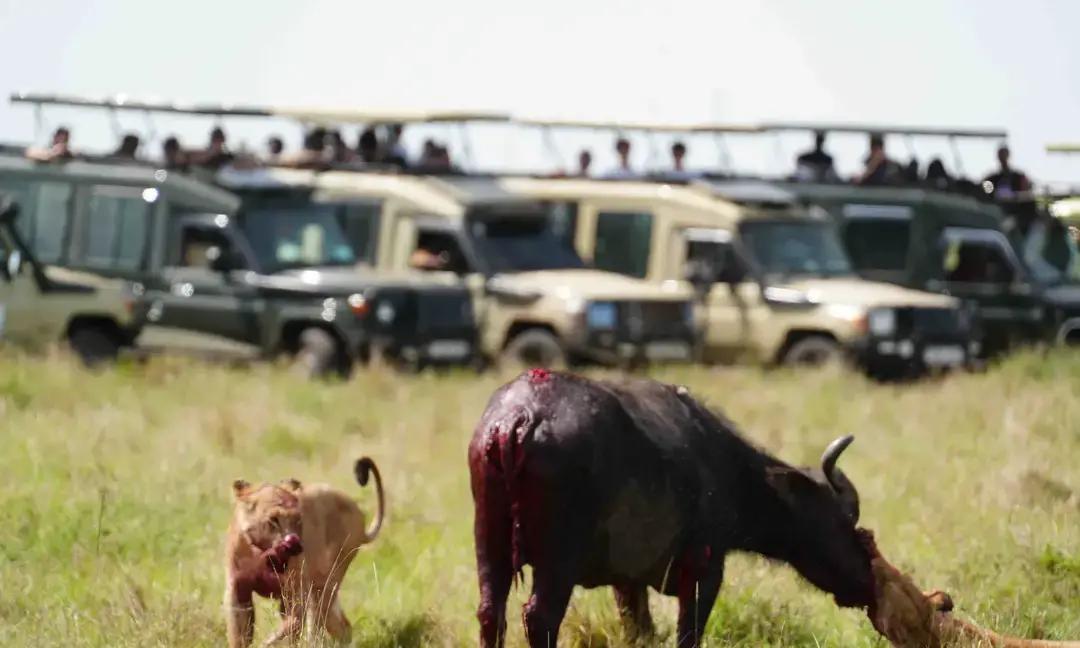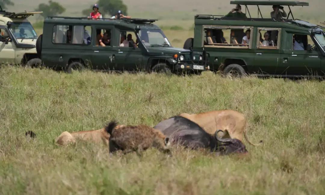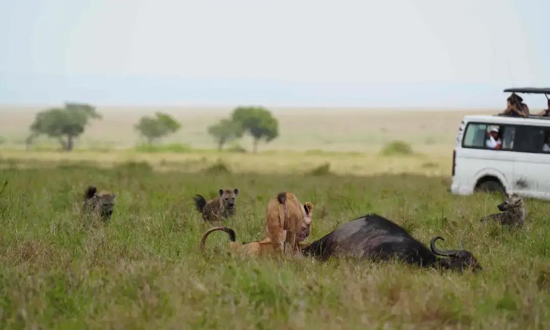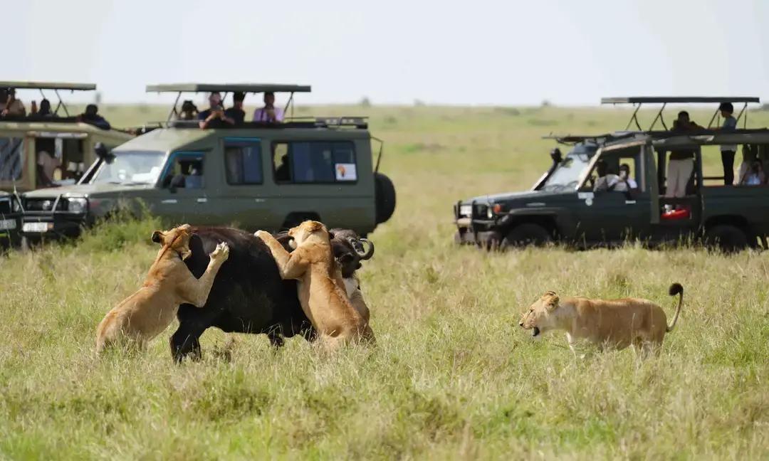 卡妈团队清晨在马赛马拉撞见四头雌狮放倒水牛,十分钟搞定。 大家刚想拍个痛快,七八只鬣狗呼啸而来,围着狮子狂吠。 狮子体力见底,只能退到一边看鬣狗撕肉,还被几只爬上尸体挑衅。 卡妈举着手机全程记录,说这是十年难遇的教科书级场面。 抢食不是偷鸡摸狗,是草原日常。 狮子也会累,鬣狗也配活。 看完整个人都清醒了,弱肉强食从来不分主角配角。