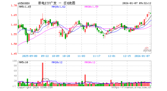 1月7日,家电ETF广发(560880)开盘跌0.12%,报1.659元。家电ETF广发(560880)重仓股方面,美的集团开盘涨0.19%,三花智控跌1.83%,格力电器涨0.00%,海尔智家跌0.19%,石头科技涨0.07%,四川长虹涨0.11%,麦格米特跌0.29%,科沃斯涨0.01%,海信视像跌0.16%,兆驰股份跌0.13%。