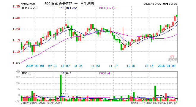 500质量成长ETF(560500)业绩比较基准为中证500质量成长指数收益率,管理人为鹏扬基金管理有限公司,基金经理为施红俊,成立(2021-08-04)以来回报为25.85%,近一个月回报为8.04%。