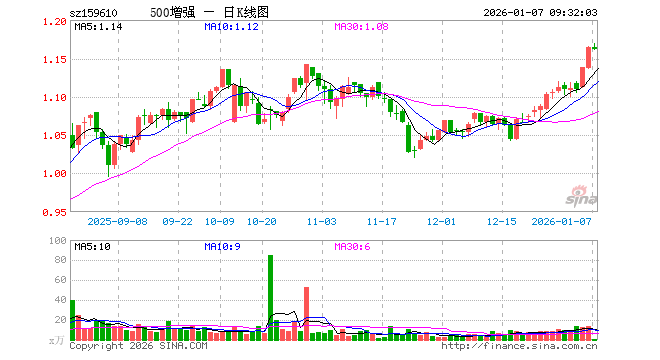 500ETF增强(159610)业绩比较基准为中证500指数收益率,管理人为景顺长城基金管理有限公司,基金经理为张晓南、郭琳,成立(2021-12-13)以来回报为16.19%,近一个月回报为9.17%。