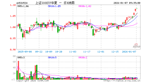 1月7日,上证580ETF华夏(530530)开盘涨0.28%,报1.084元。上证580ETF华夏(530530)重仓股方面,华胜天成开盘跌0.27%,内蒙一机跌0.06%,仕佳光子涨0.88%,华创云信跌0.29%,宏达股份跌0.90%,东睦股份跌0.46%,西藏天路跌0.36%,大智慧涨1.56%,奥比中光涨0.00%,益方生物跌0.10%。