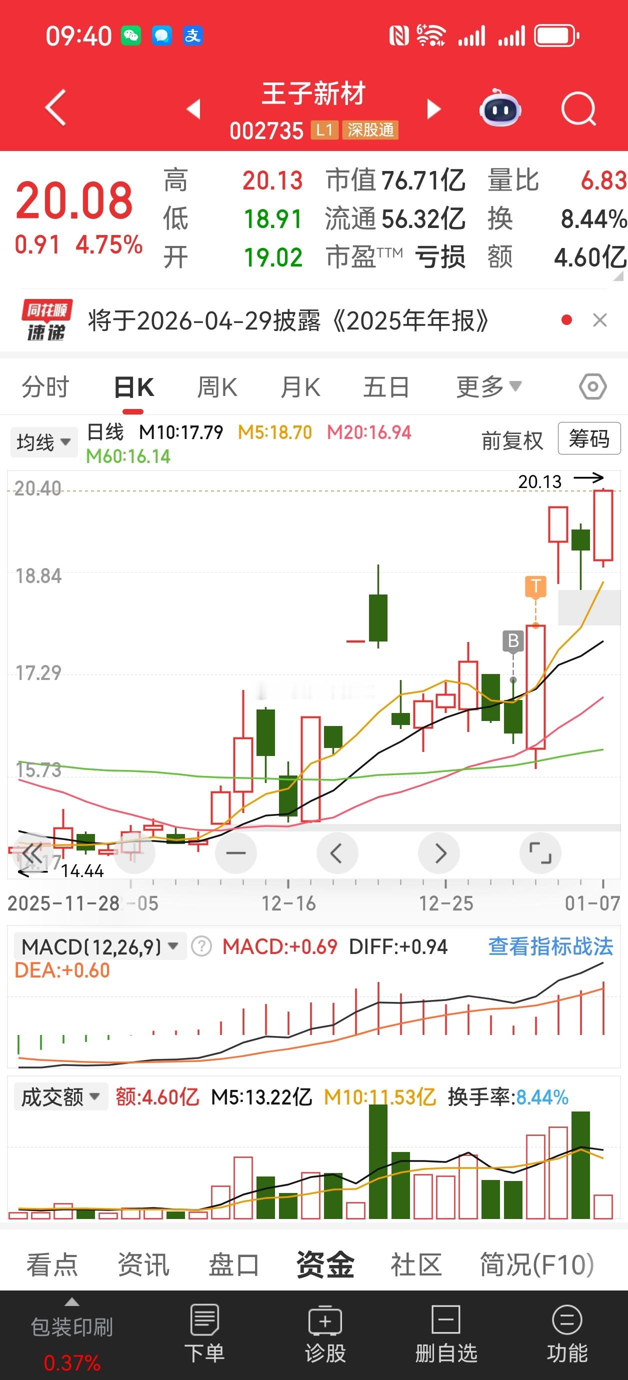 1月9日我毅然重仓买入了航天科技,虽然它多次炸板,但挡不住我对它的看好。当天10