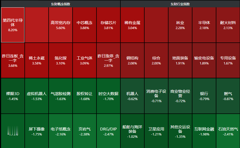 上证报中国证券网讯1月7日早盘,沪指震荡拉升,创业板指冲高回落。截至午间收盘,沪指涨0.29%,深证成指涨0.35%,创业板指涨0.41%。盘面上看,光刻胶概念表现强势,国风新材3天2板,南大光电、彤程新材等多股涨停。可控核聚变概念股表现活跃,王子新材、中国一重、中国核建等多股涨停。脑机接口概念延续强势,创新医疗、南京熊猫均走出3连板。下跌方面,石油天然气板块震荡调整,燃气、银行等跌幅靠前。