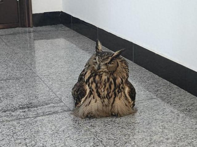 接警后,值班民警迅速赶赴现场。抵达后,民警首先对报警人主动保护野生动物的行为给予肯定和感谢,详细核实记录了发现地点、猫头鹰状态等关键信息;同时,立即联动市野生动物保护中心,为受伤猫头鹰争取专业救助支持。为避免猫头鹰受外界惊扰产生应激反应,民警小心翼翼将其接回派出所,专门寻找安静区域作为临时安置点,妥善做好转运前的防护照料。