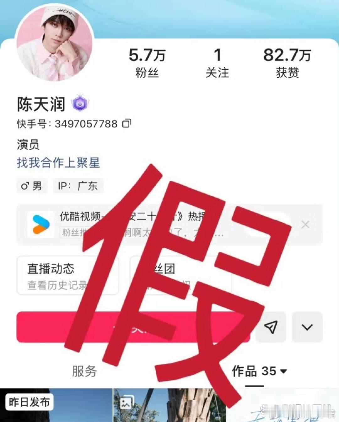 工作室打假陈天润社交平台账号:“陈天润先生及工作室从未在快手平台注册、运营任何个人社交媒体账号,任何以 “陈天润” 名义在快手平台开设的账号,均与陈天润先生本人及工作室无任何关联,其发布的所有内容均非陈天润先生本意。”