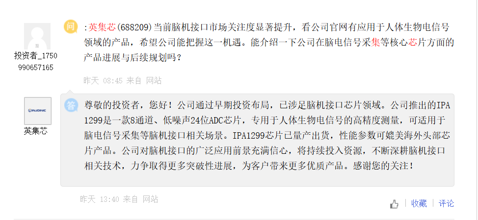 彼时英集芯表示,IPA1299芯片已量产出货,性能参数可媲美海外头部芯片产品。公司对脑机接口的应用前景充满信心,将持续投入资源,不断深耕脑机接口相关技术。