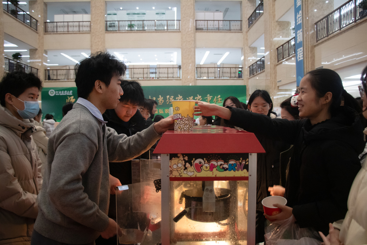 “给我来一杯”“太好吃了”……“爆米花专区”被学生们围得水泄不通。据了解,这些爆米花所用的的玉米品种是由河南农业大学培育的。
