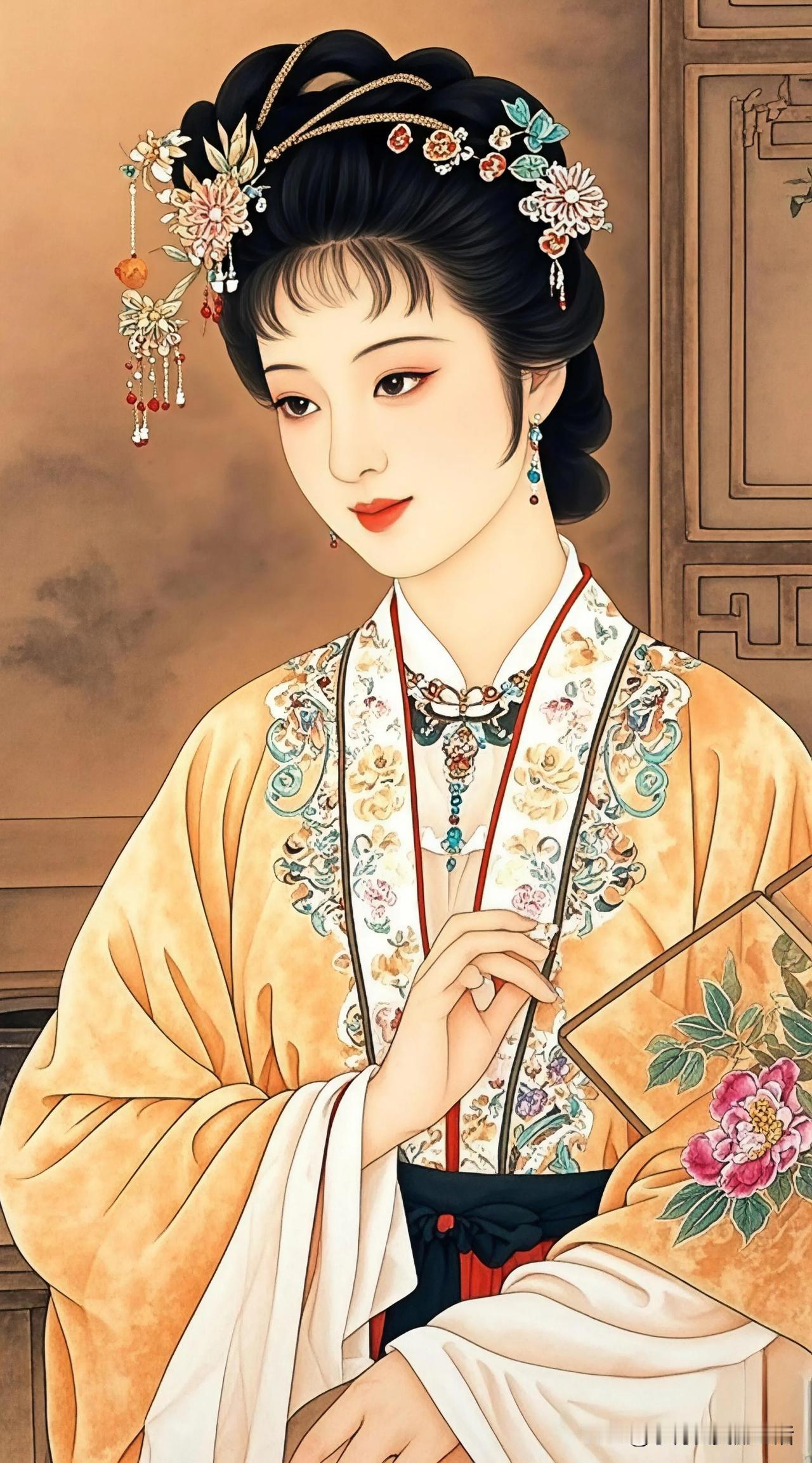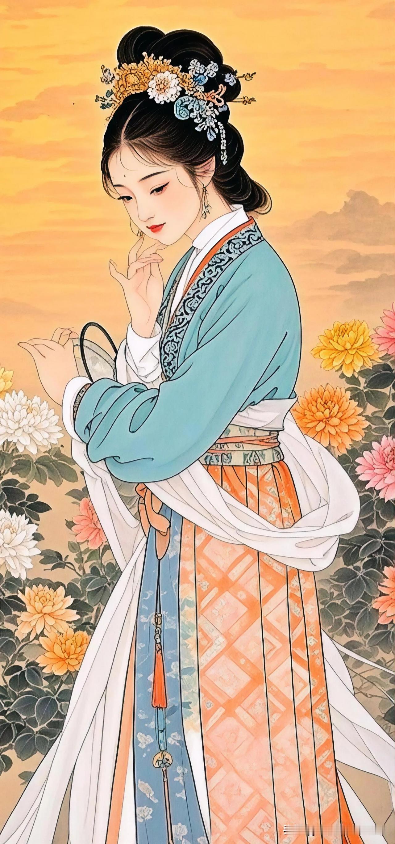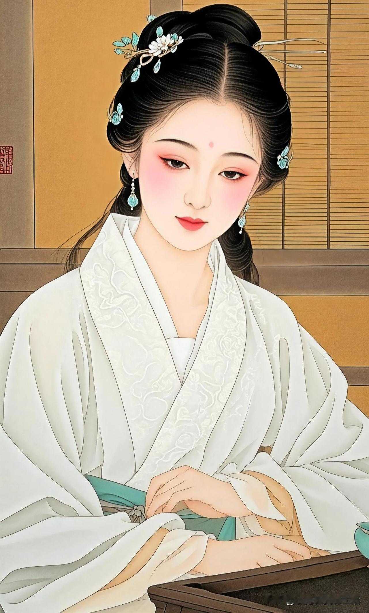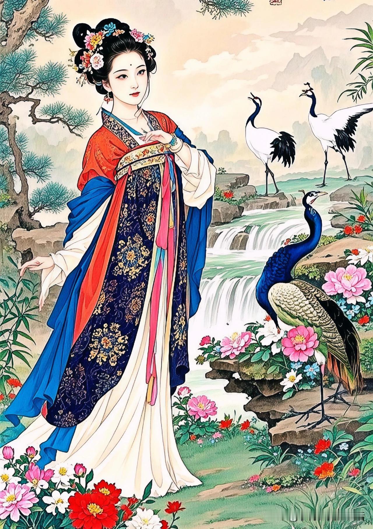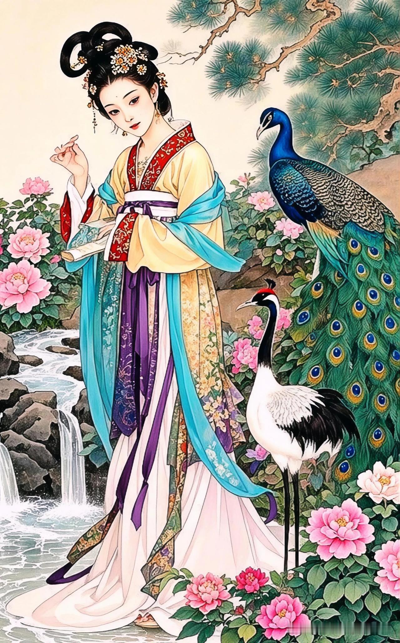 花间美人,孔雀相随。