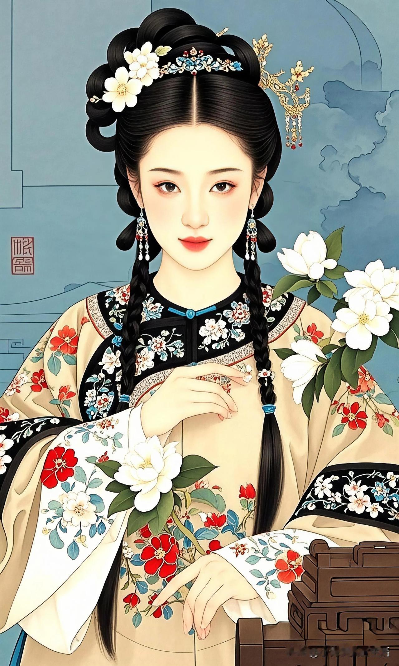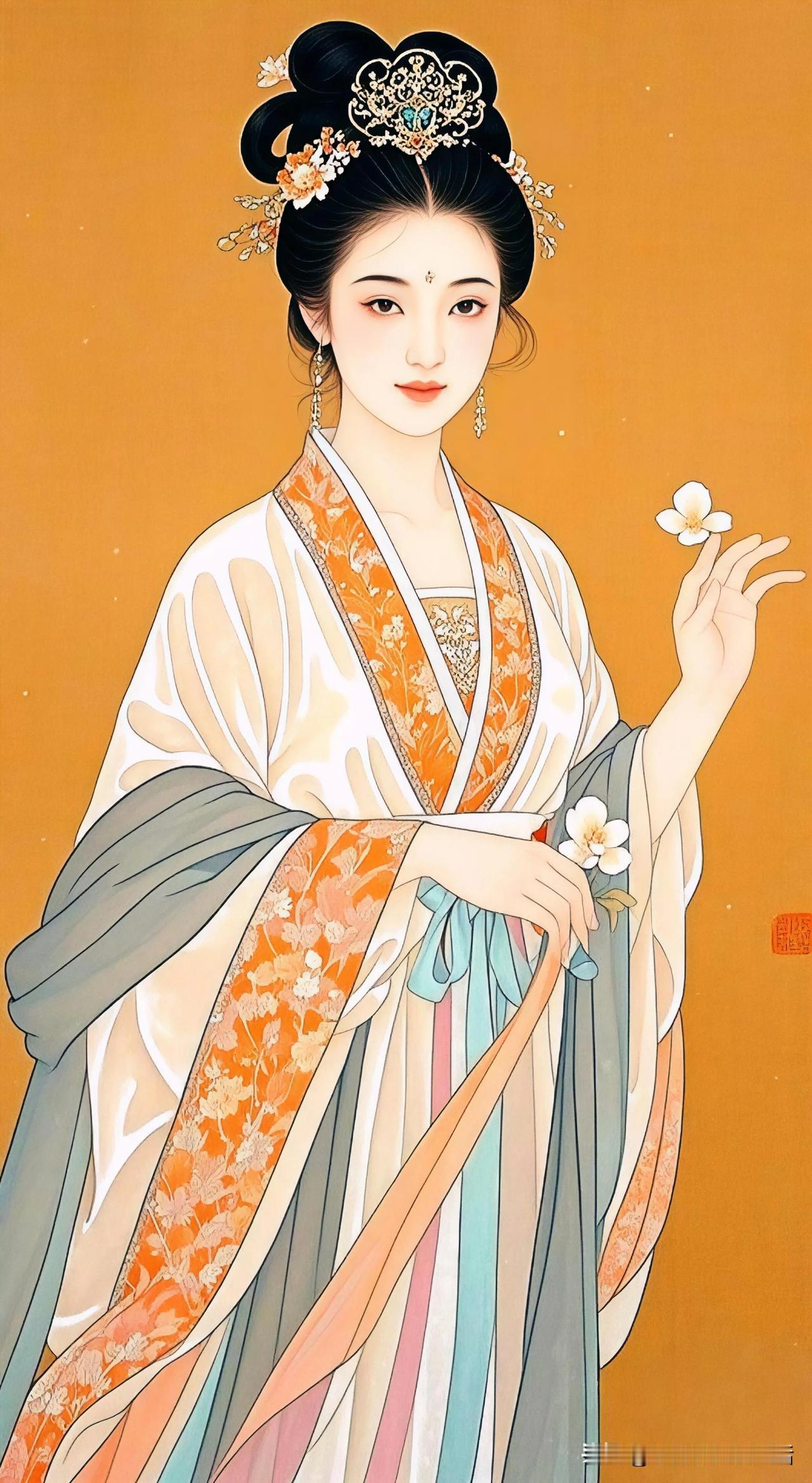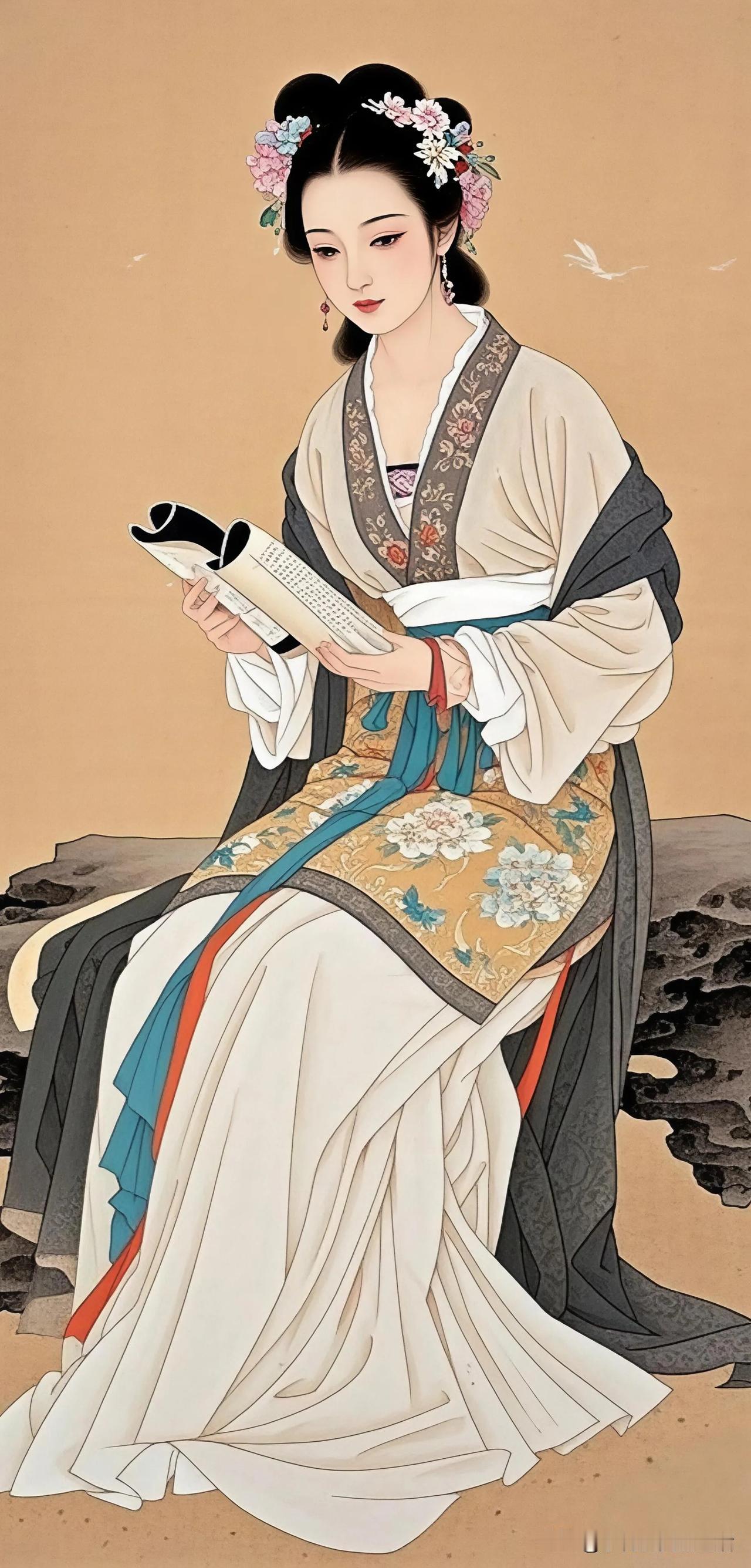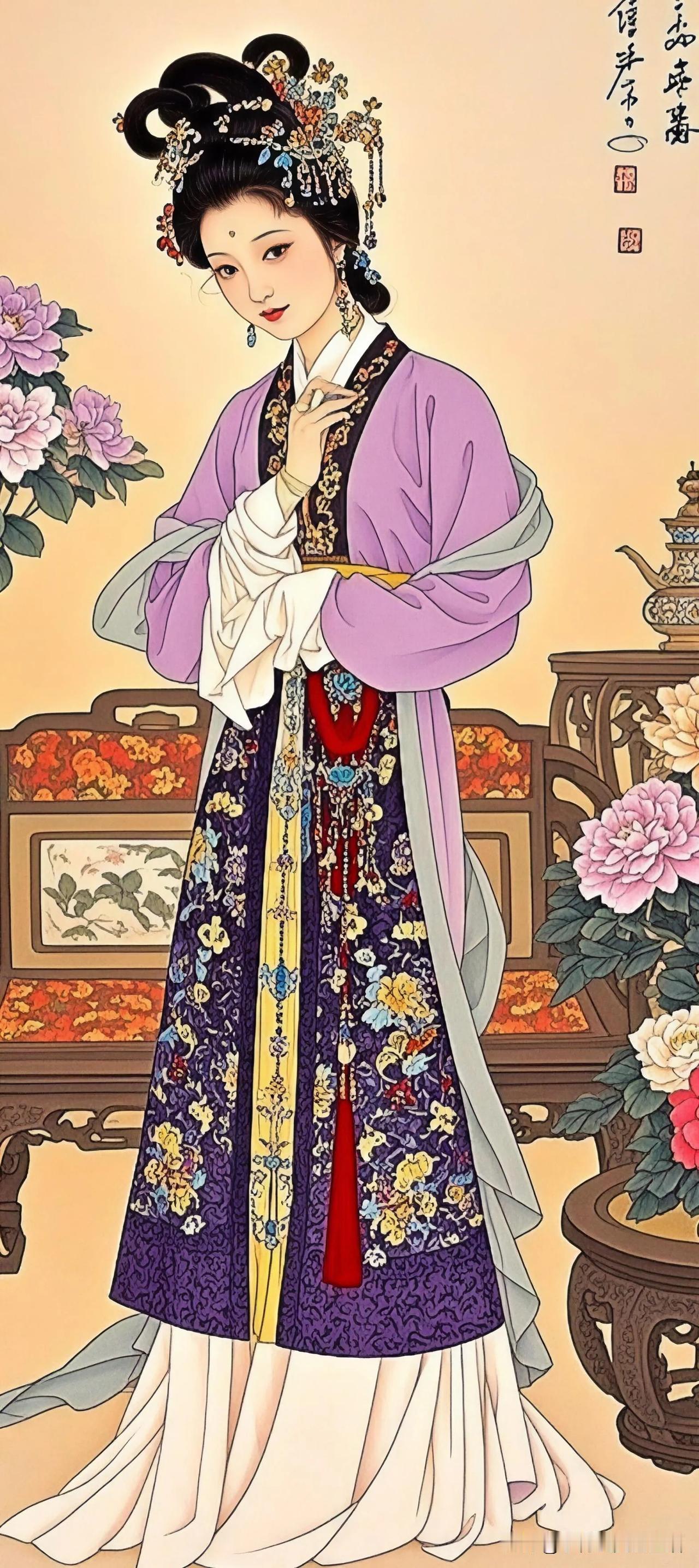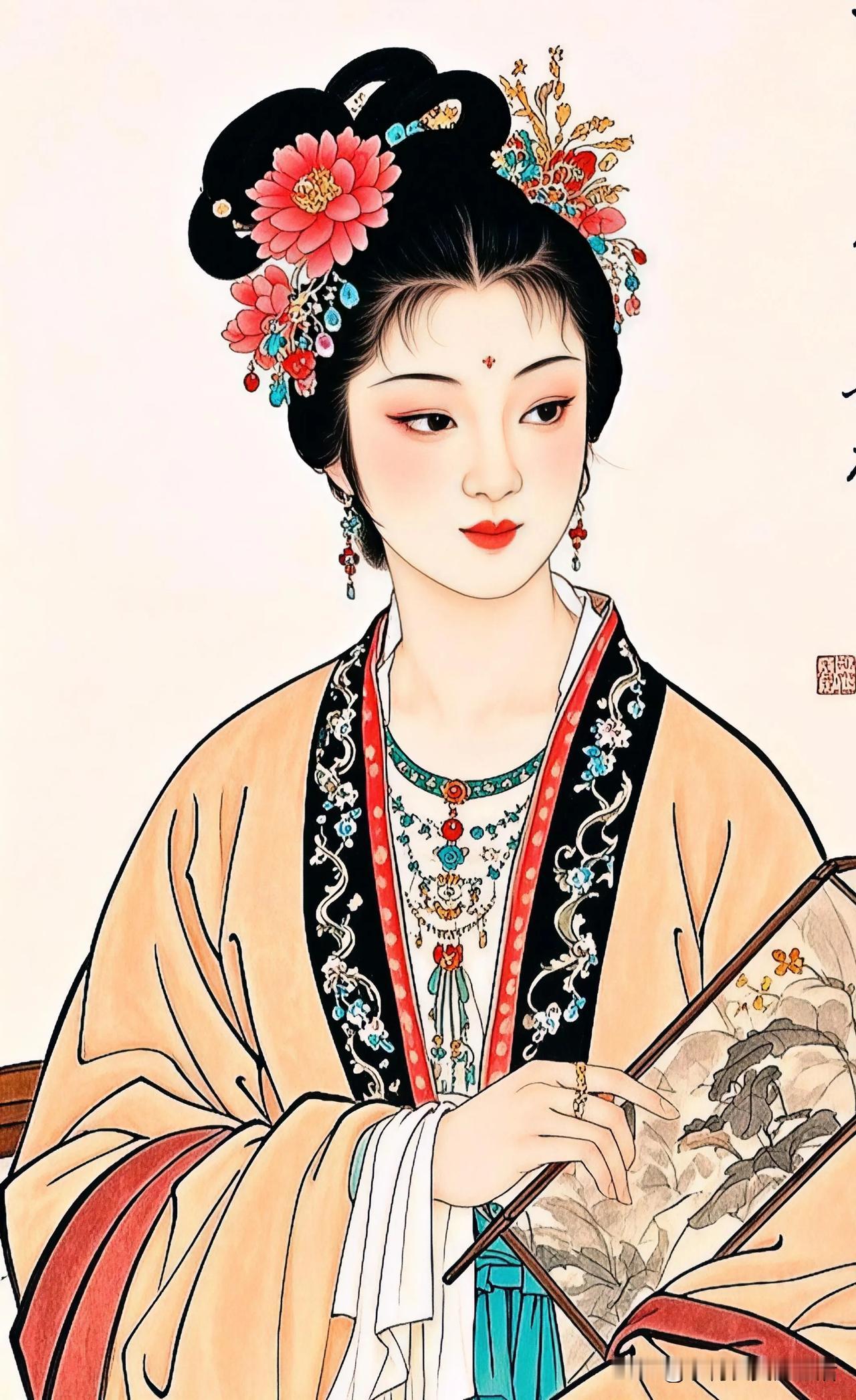 花间美人,孔雀相随。