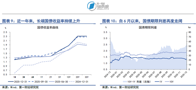 在2025年12月29日至12月31日当周,各期限国债收益率涨跌不一。从短端来看,虽然银行间市场资金面在年末收紧,但上周1月期、3月期以及6月期国债收益率分别下降2.98BP、2.45BP和0.39BP。从中长端来看,上周2年期、5年期、10年期以及30年期国债收益率分别上升0.61BP、2.67BP、1.59BP和3.85BP。