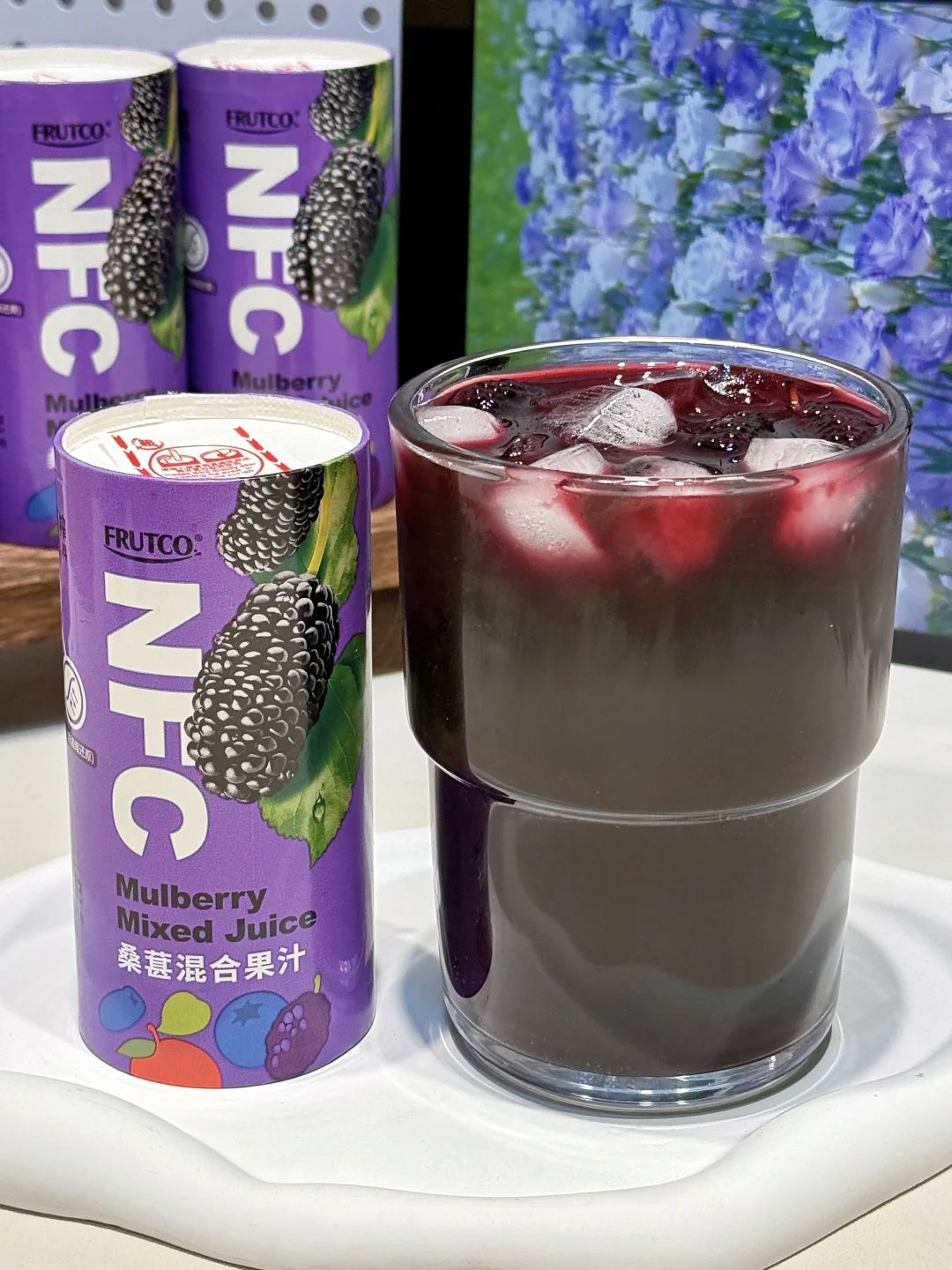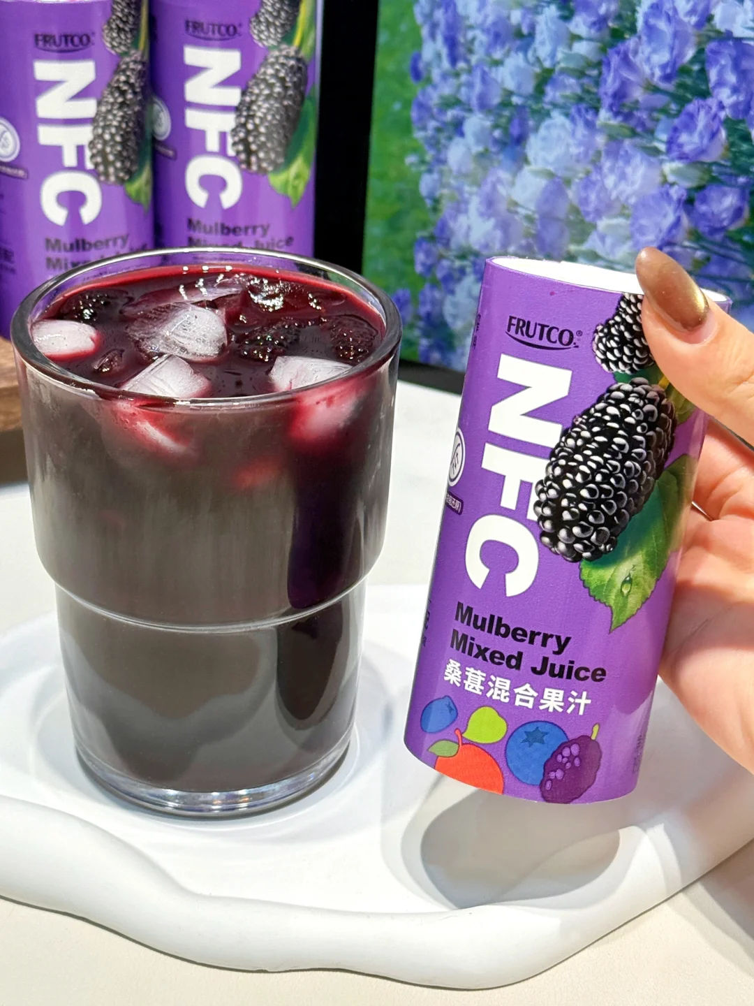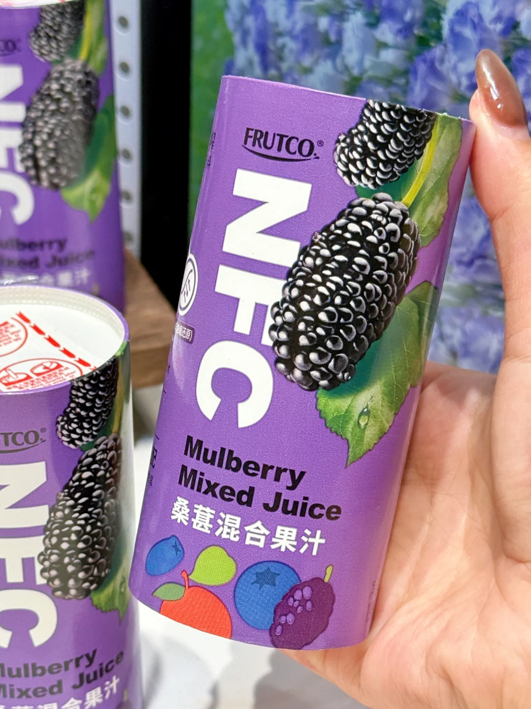 就是这款100%鲜果榨取的NFC桑葚混合果汁汁! 入口就是浓浓的桑葚果香!酸酸甜甜的! 能喝到桑葚的天然鲜甜,喝着非常爽口!! 加点冰块感觉更好喝!! 配料表干干净净,只有几种水果!没有别的添加! 果汁脑袋都快囤起来!留着过年慢慢喝!