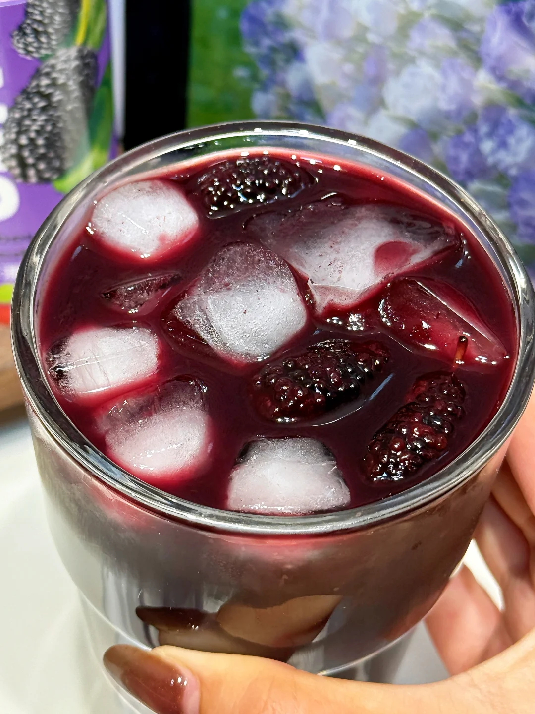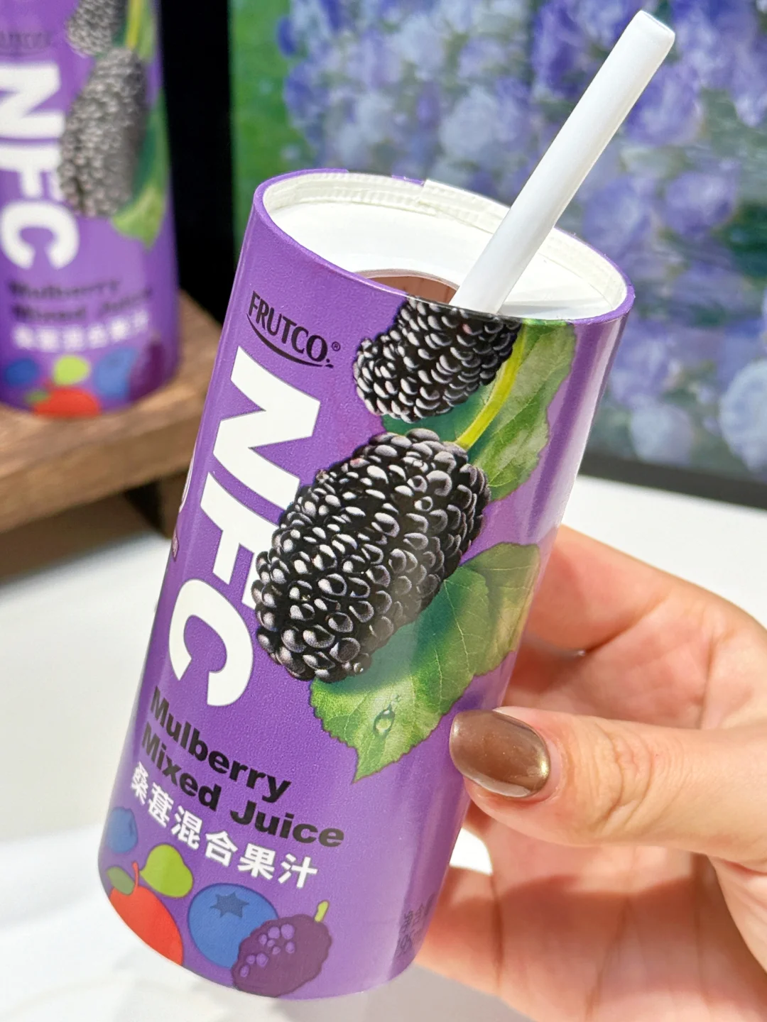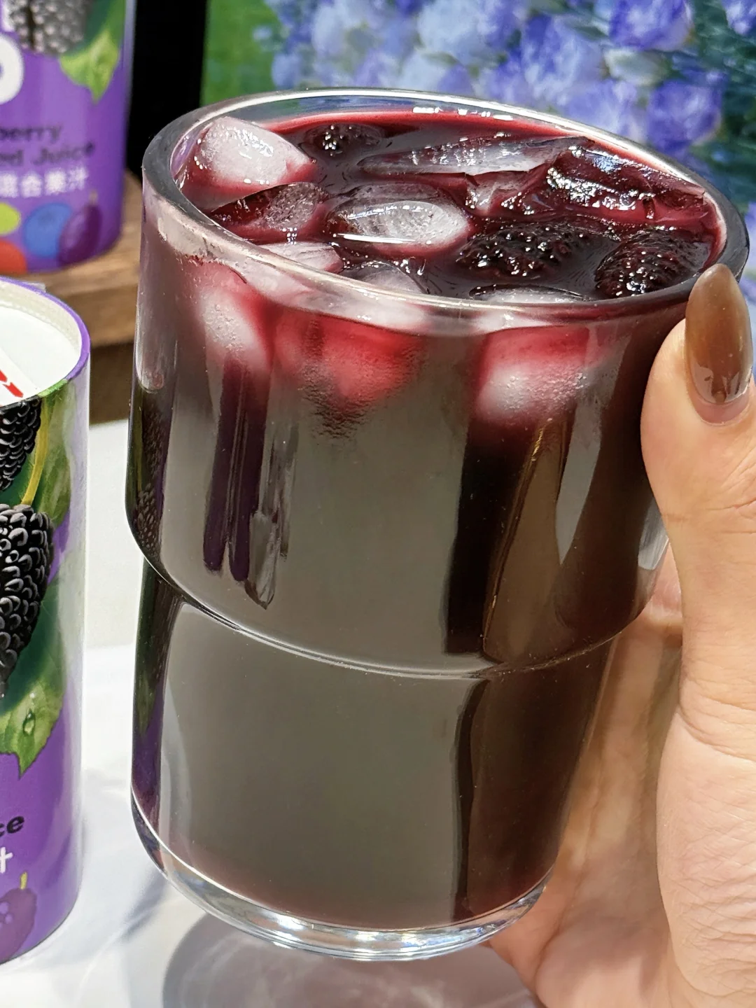 就是这款100%鲜果榨取的NFC桑葚混合果汁汁! 入口就是浓浓的桑葚果香!酸酸甜甜的! 能喝到桑葚的天然鲜甜,喝着非常爽口!! 加点冰块感觉更好喝!! 配料表干干净净,只有几种水果!没有别的添加! 果汁脑袋都快囤起来!留着过年慢慢喝!