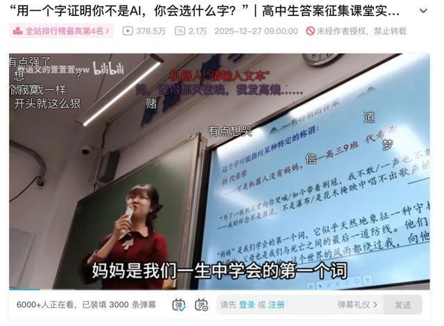 她收到了54份高中生的答案,既出人意料,又直击人心。有学生选“妈”——因为机器人没有妈妈;有学生选“急”——AI不懂人在医院等报告时那种坐立不安;也有学生选“慢”或“钝”,强调人类愿意为一朵云、一束光停下脚步,哪怕效率低一点。