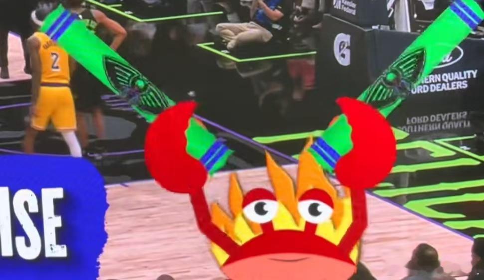 鹈鹕队竟然也不尊重詹姆斯?湖人对阵鹈鹕的比赛中,詹姆斯执行罚球的时候,鹈鹕主场大屏幕竟然播放一只螃蟹挥舞荧光棒的画面。原以为螃蟹只是一些中国黑粉对詹姆斯的称呼,没想到在美国也是如此?当然,也有一些詹迷对这个画面做出其他的解释,他们认为詹姆斯有助攻有三分,又能抢断大风车,面对胖虎依旧横着走。