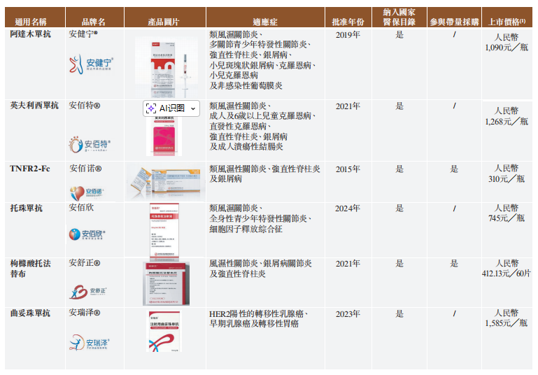 据招股书,博锐生物针对一系列全面的核心自身免疫性及炎症性疾病及肿瘤适应症,包括类风湿性关节炎、银屑病、DLBCL、痛风、克罗恩病及强直性脊柱炎有较好的创新产品。根据弗若斯特沙利文的资料,按自身免疫性疾病生物制剂所得收入计,博锐生物自2023年起连续两年在中国制药企业中位列第一。