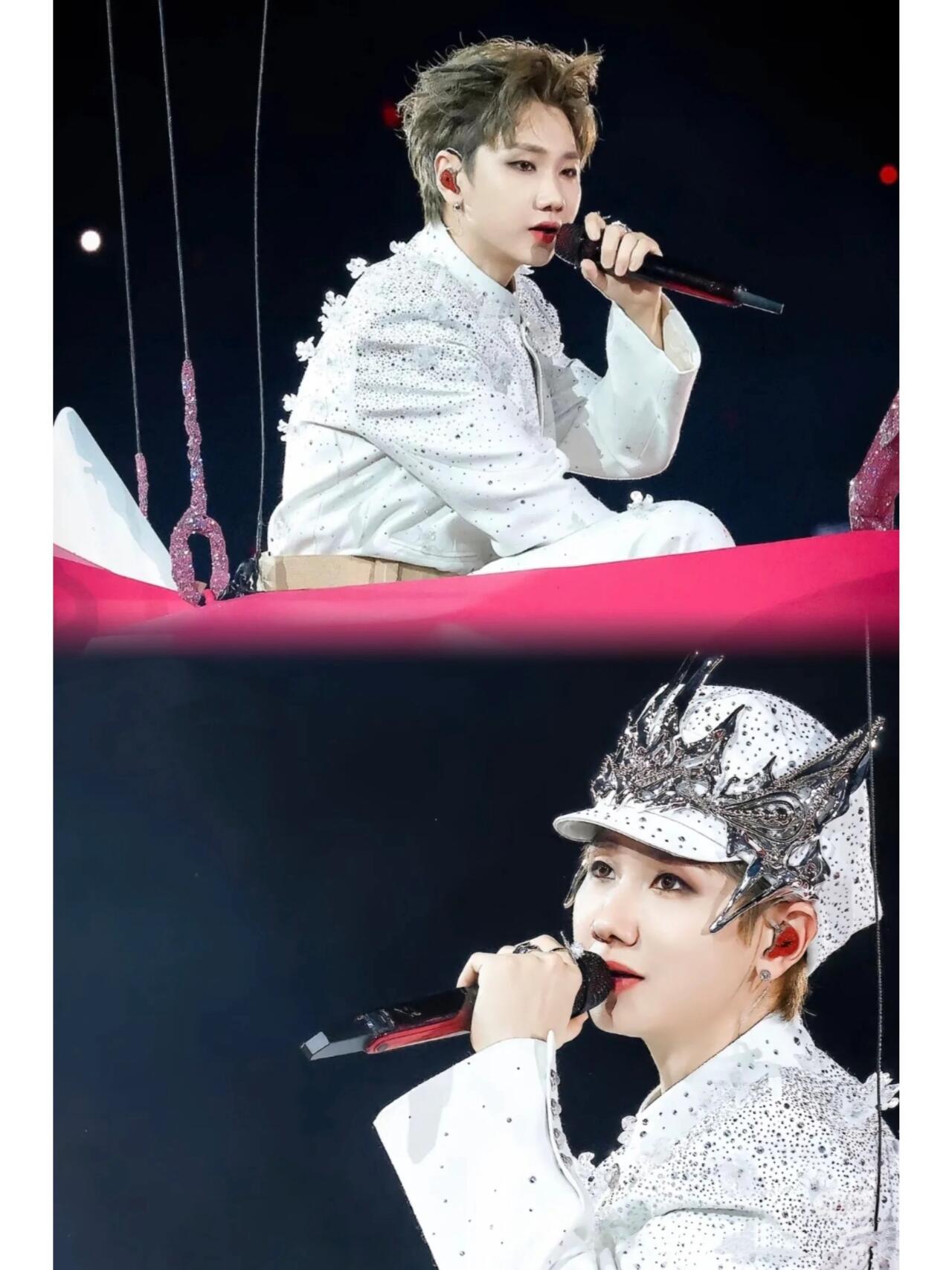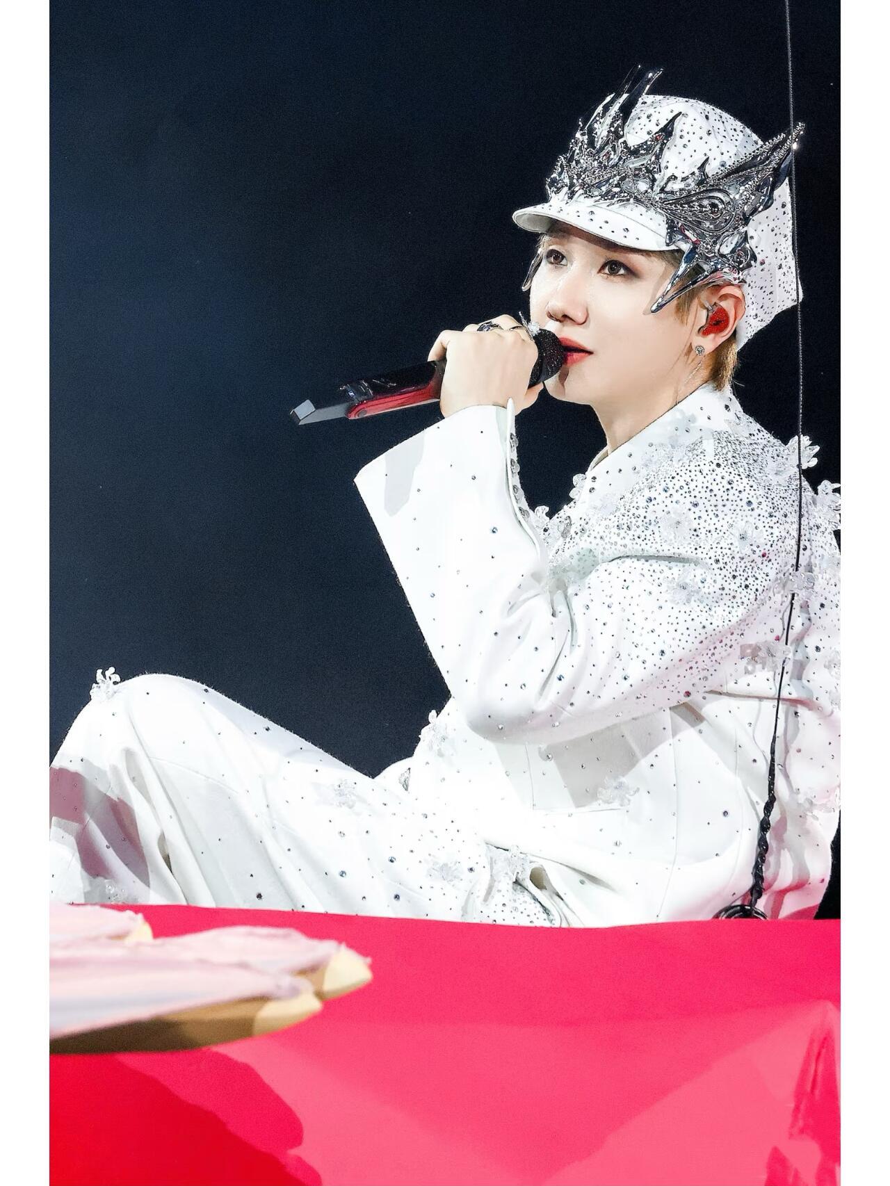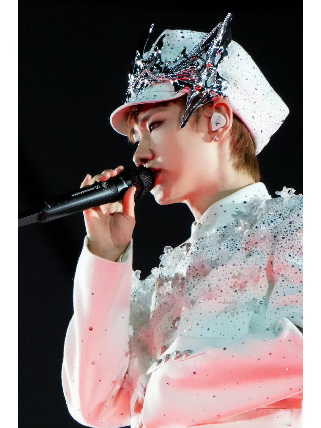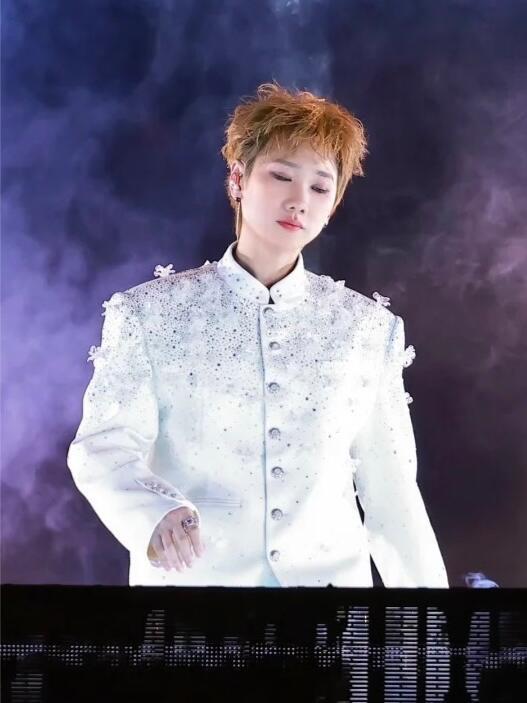 汪苏泷风格大赏时尚灵感解读 汪苏泷x faceonlab银河絮语幻色羊毛渐变出冰川白到极光蓝的星云感,108颗手工冰晶花+4层水钻镶成星轨,3D打印王冠精准折射舞台光,一动就像把银河穿身上,璀璨又浪漫。