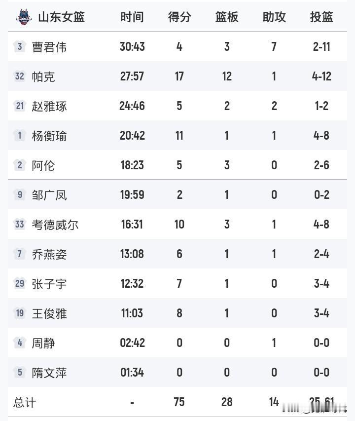 翟若云19+ 山西女篮胜山东女篮 张子宇7分 目前经验太少了