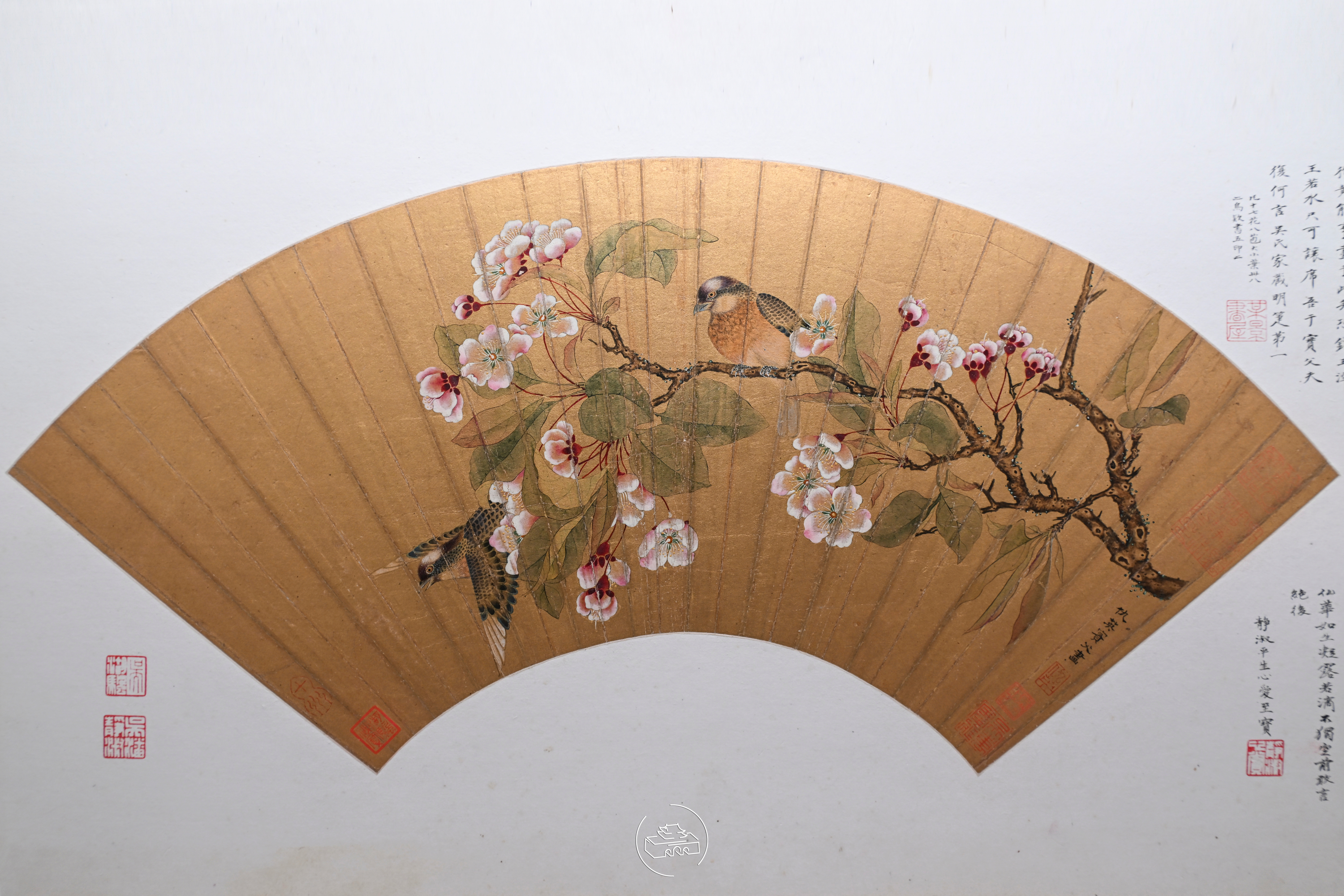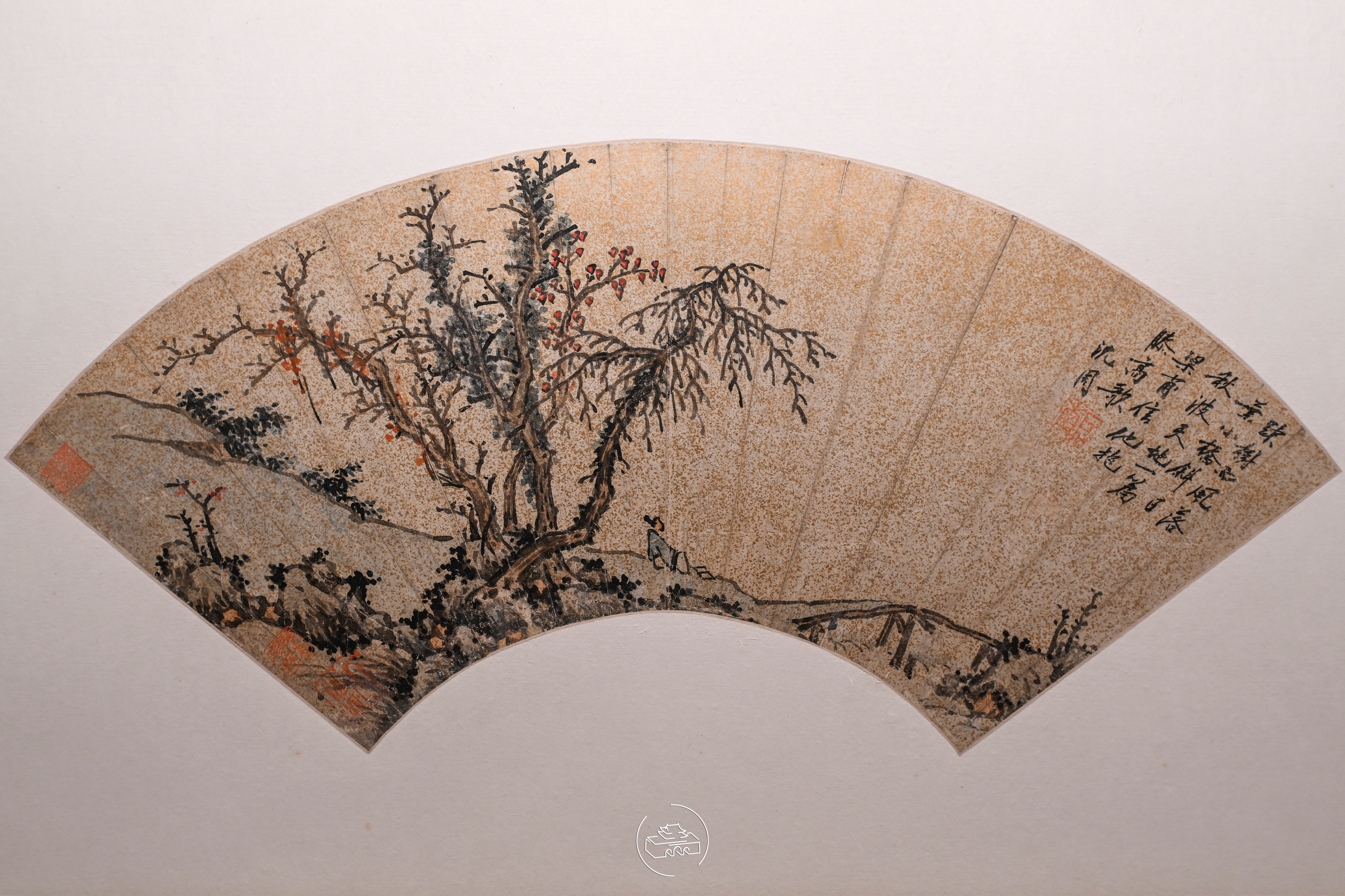 至扇至美:上海博物馆藏历代扇面书画名品展 明篇图1 明 陈洪绶 问道图扇页 金笺设色图2 明 陈继儒 梅花图扇页 金笺设色图3 明 仇英 海棠山鸟图扇页 金笺设色图4 明 丁云鹏 调鹦图扇页 纸本设色图5 明董其昌 秋山积翠图扇页 金笺设色图6 明 蒋嵩 坐对泉流图扇页 金笺水墨图7 明 蓝瑛 山水图扇页 金笺设色图8 明 沈周 疏树小桥图扇页 金笺设色图9 明 孙克弘 桃花图扇页 金笺设色图10 明 王穀祥 草虫图扇页 金笺水墨图11 明 文徵明 春游图扇页 金笺设色图12 明 谢缙 汀树钓船图扇页 纸本设色图13 明 姚绶 醉卧松石图扇页 金笺设色图14 明 周臣 寒林激湍图扇页 金笺设色图15 明 黄道周 行草书雨滞庙湾图扇页 金笺图16 明 唐寅 行书花下酌酒歌扇页 金笺图17 明 徐渭 行书杜甫诗二首扇页 金笺图18 明 祝允明 草书秋日闲居图扇页 金笺