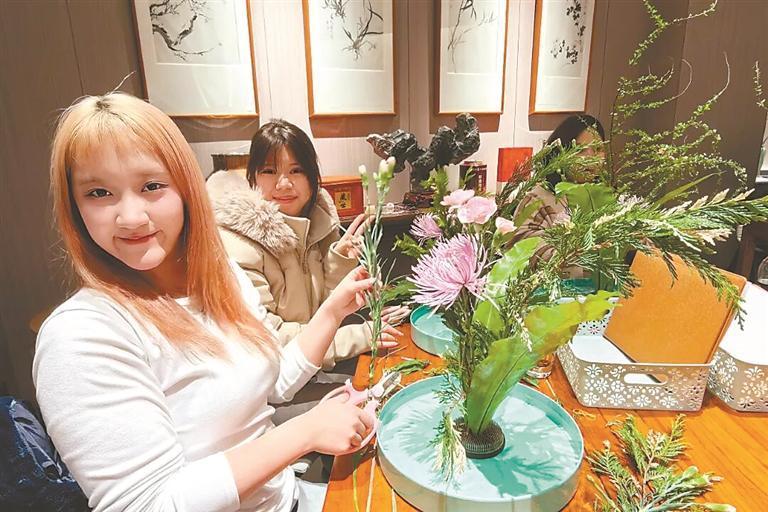 在哈尔滨大方茶馆,留学生们兴致勃勃地体验非遗花艺创作,在专业教师指导下学习修剪、搭配、造型,沉浸式感受东方美学的雅致;他们还饶有兴趣地亲手冲泡中国茶,体验了潮州工夫茶实操课,在茶香氤氲中体会中国茶文化“和、敬、精、乐”的深厚内涵。