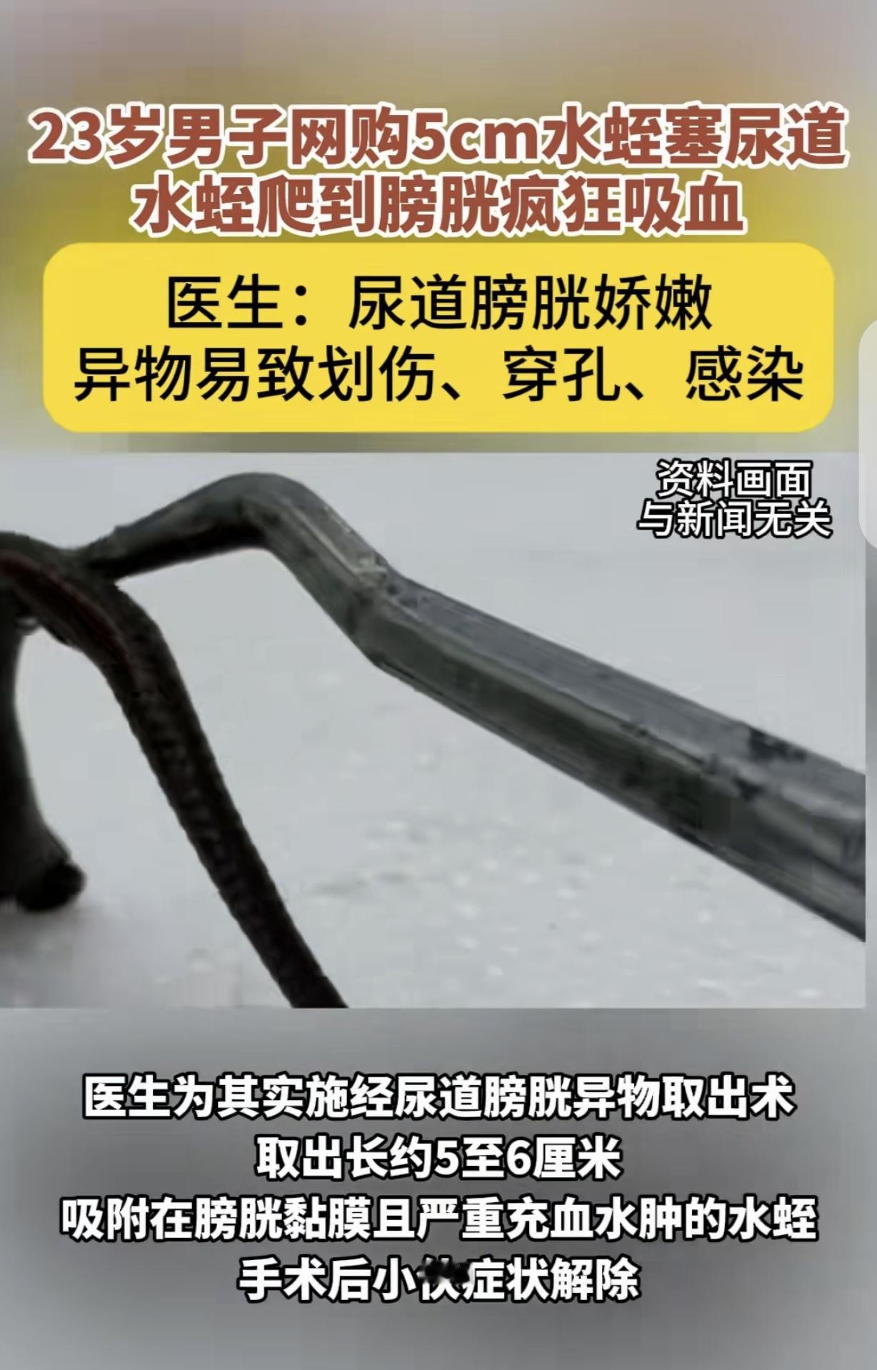 “好奇害死猫!”河南郑州,一23岁小伙听信某偏方,他出于好奇,竟然真网购一条5cm长的水蛭塞进尿道,万万没想到,水蛭竟然爬进他的膀胱,疯狂吸他的血,他疼的满地打滚,还撒不出尿,差点丢了性命。网友:世界之大,无奇不有! 据1月7日观威海报道,小郑23岁,这个年纪,虽然成年了,但年纪不大,对什么稀奇古怪的事,都充满了好奇,甚至会亲自体验一下。 一天,小郑在网上看到一个偏方,偏方具体治疗啥,案例里没交代,但具体的操作,听了就让人毛骨悚然,竟然是把活水蛭塞进尿道。 一般人看到这个偏方,都吓得不轻,别说照着去做了,但小郑初出茅庐,啥都不怕,他竟然产生了一试究竟的想法。 这个想法一萌发,就再也按耐不住了,他竟真的网购了一条蠕动的5cm水蛭,直接塞进自己尿道。 医生给小郑做了手术,取出水蛭,他才转危为安,但对于自己愚蠢的行为,他真是又后悔又后怕。 对于小郑的行为,很多人感觉不可思议,无法理解,过去我们因为教育跟不上,文化知识严重缺乏,认识有所偏差在所难免!没想到如今竟还有如此愚昧无知之人,着实令人难以置信。 如今的孩子生活知识教育真的是太匮乏了,我们小时候对这玩意的认知就是,它只要沾到你的皮肤,就会吸血,就会往肉里钻,钻到你的身体里,爸妈教的,所以看到它跑都来不及,吓唬小孩,跟猫猴子差不多一个级别的。 这事儿听起来荒诞至极,却真实地发生了。 小郑做出如此疯狂又愚蠢的举动,好奇心作祟是一方面。23岁的他,虽已成年,但心智或许还不够成熟,对世界充满探索欲,这本无可厚非。 可问题在于,他缺乏基本的判断力和对危险的认知。正常人都知道,尿道是人体极为敏感且脆弱的部位,随意往里塞东西,尤其是活物,必然会造成严重伤害。 但小郑却不管不顾,仅凭一时好奇就付诸行动,这反映出他在成长过程中,没有接受到足够的安全教育,对自身身体构造和潜在危险一无所知。 再说说这偏方,网络上各种信息鱼龙混杂,真假难辨。一些毫无科学依据的偏方,打着“神奇疗效”的幌子四处传播。 小郑轻易就相信了这样的偏方,说明他缺乏判断力,面对网络铺天盖地的不实消息,应该保持清醒的头脑,不盲目跟从,不轻易相信。小郑显然在这方面有所欠缺,才会被偏方牵着鼻子走。 从家庭教育的角度来看,小郑的父母或许也有责任。孩子成长过程中,父母的言传身教至关重要。 小时候,我们通过父母的教导,知道水蛭会吸血、会往肉里钻,看到它就跑得远远的。 可小郑却做出如此大胆又危险的行为,说明他的父母在他成长过程中,可能没有给予足够的生活常识教育,没有让他明白哪些事情是绝对不能做的。 家庭是孩子成长的第一课堂,父母是孩子的第一任老师,如果在这个课堂上,孩子没有学到基本的生活技能和安全知识,那么当他走向社会时,就很容易做出一些让人匪夷所思的事情。 学校教育同样不容忽视。学校不仅是传授知识的场所,更是培养人格、塑造价值观的地方。 除了知识的传授,学校还应该加强安全教育、生活常识教育以及心理健康教育。 让孩子们知道如何保护自己,如何正确应对生活中的各种问题,如何保持健康的心理状态。 如果学校在这些方面做得足够好,小郑或许就不会因为一时好奇而做出如此荒唐的举动。 《民法典》第1173条规定:被侵权人对同一损害的发生或者扩大有过错的,可以减轻侵权人的责任。 小郑作为23岁完全民事行为能力人,明知将活体水蛭塞入尿道存在重大风险,仍主动实施该行为,构成“自陷风险”。 他的行为直接导致自身损害,根据《民法典》第1173条,应对损害承担主要责任。 偏方传播者或者平台,如果网络平台没对涉事偏方信息进行审核删除,可能违反《电子商务法》第38条安全保障义务,需承担部分责任。但小郑主动购买并实施,减轻平台责任。 水蛭卖家也有责任,如果商家没标注“禁止用于人体”等风险提示,违反《消费者权益保护法》第18条安全保障义务,但小郑的滥用行为超出合理预期,卖家责任较轻。 家庭和学校没尽到充分的安全教育义务,如未告知生物危险性、身体保护常识,但该过失属道德范畴,不构成法律直接追责事由。 受害人自担主要责任,70%以上,因其直接实施危险行为;平台或卖家仅承担次要责任,如未尽审核或者警示义务,赔偿比例一般不超30%。 成年人对网络信息缺乏甄别能力,盲目尝试危险行为;平台监管漏洞,对“偏方”等有害内容未有效过滤。 关注@灋律盐究员 学法辩是非,用法止纷争。