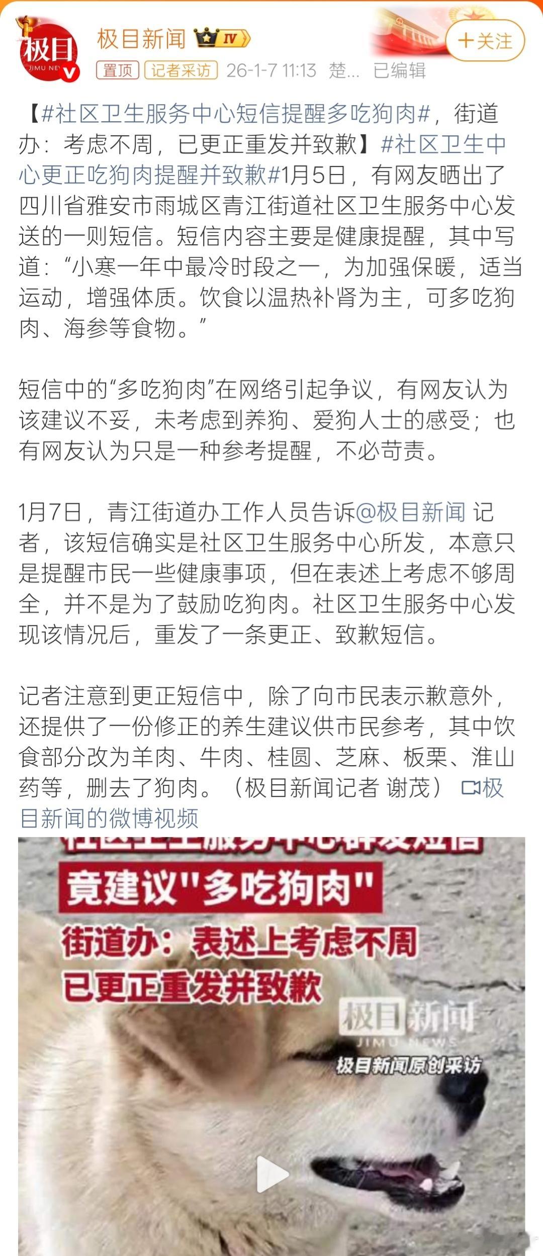 社区卫生服务中心短信提醒多吃狗肉“没吃过狗肉的人,都怕吃狗肉;吃过了狗肉,才知道狗肉香。”连教员都说吃狗肉可以,普通人吃狗肉又有什么不行?这事儿之所以能闹上热搜,无非是官方长久以来的妥协忍让,才让所谓的爱狗人士愈发猖狂。狗首先是财物,其次才是所谓的伴侣动物。有些人出于感情,难以对自家毛孩子下嘴。这当然没问题。但对自己的要求,不该用来约束别人。社区卫生服务中心短信提醒多吃狗肉