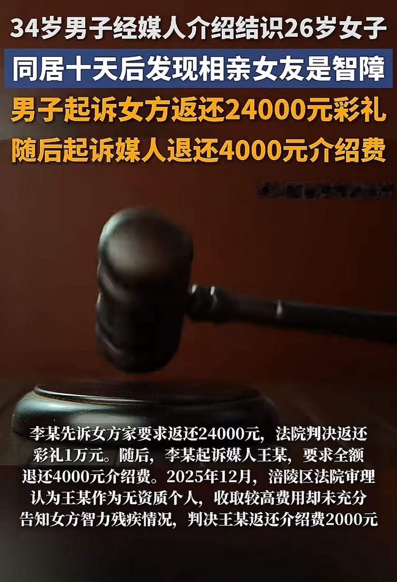 同居十天发现相亲女友竟是“智障”,媒婆隐瞒女方真实状况,男方索赔4000元,法院判决引发网友热议!这一事件像一颗重磅炸弹,瞬间点燃了网络的热烈讨论。有人愤怒质问:媒婆是不是在坑蒙拐骗?有人则深思:在婚恋市场,这样的隐瞒是否合理?更有人感慨:这是不是提醒我们,选择伴侣,不能只看表面,更要看清底层的真实。 事件的核心在于,男方在与女方同居十天后,发现女方实际上存在智力残疾,且媒婆在介绍时隐瞒了这一关键信息。男方一气之下索赔4000元,法院的判决似乎给了他一个“说理”的理由,但网友们的反应却远比判决更激烈。有的网友表示:这钱算什么,关键是婚姻的信任被彻底击碎!有的网友则担心:如果隐瞒变成常态,婚姻还能有诚信可言吗? 更令人深思的是,事件背后折射出的是整个婚恋市场的“潜规则”——信息不对称、虚假宣传、隐瞒真相。这不仅仅是一个个案,而是许多婚恋中的“潜规则”缩影。媒婆作为中介,本应起到桥梁作用,却在利益驱使下选择了隐瞒,最终害人害己。这让人不禁问:我们该相信谁?我们又该如何保护自己不被“套路”? 这起事件也引发了网友们的“私房话”——有人分享自己十年的婚姻,突然发现伴侣有家暴倾向,面对这样的“真相”,他们该怎么办?有人提出:能不能像男方一样,依法索赔?其实,这背后隐藏着一个更深层次的问题——婚姻的信任危机。我们在选择伴侣时,是否真的了解对方?又是否有足够的勇气面对“真相”?如果真相令人心碎,我们又该如何自处? 这个时代,信息的透明度变得尤为重要。婚姻不再是童话,而是一场需要双方共同经营的“战役”。我们要学会用理性去看待感情,用法律去保护自己。更要警醒那些“隐瞒真相”的中介和媒婆,别让“套路”成为婚姻的绊脚石。 这起事件告诉我们:在爱情和婚姻的道路上,真诚才是最坚实的基石。任何的隐瞒和欺骗,终究会被揭穿。只有敢于面对“真相”,才能拥有一段真正值得珍惜的感情。希望每一个人都能擦亮双眼,用心去识人,用心去爱,别让“套路”毁掉自己的人生。 你怎么看?在爱情的世界里,真诚与信任才是最珍贵的宝藏。让我们共同呼吁:婚姻需要真诚守护,婚恋需要信息透明。只有这样,才能迎来一个更加健康、更加幸福的未来!相亲媒婆
