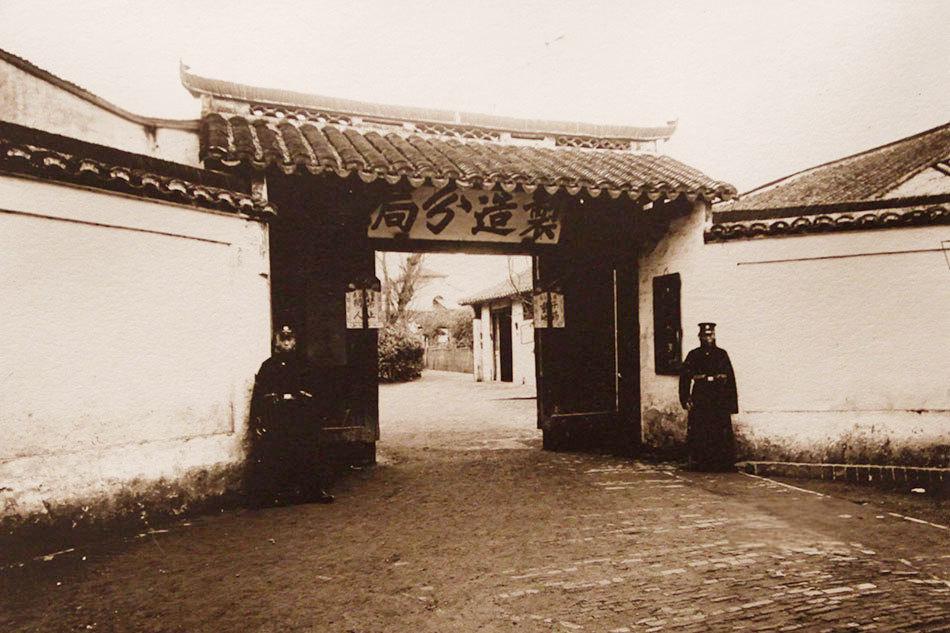 1909-1911年间,江南制造总局某分局的大门,中式传统门楼挂着“製造分局”匾额,白墙黑瓦的江南建筑风格里,两名身着制服的卫兵站岗戒备,这扇看似普通的传统大门背后,是晚清最重要军工体系的分支机构之一。 江南制造总局是1865年李鸿章创办的洋务派核心军工厂,为扩大生产、配套区域新军,陆续设立了多个分局。这处分局正是其分支之一,主要负责近代军火的生产、组装或区域供应,门口的卫兵也印证了它的特殊属性——军工生产是清廷的核心机密,安保规格远超普通场所。
