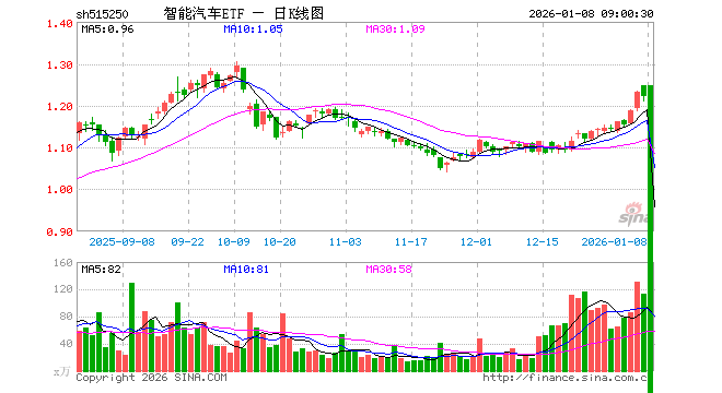 1月7日,智能汽车ETF(515250)跌0.89%,成交额1.39亿元。当日份额增加2700.00万份,最新份额为7.14亿份,近20个交易日份额增加2.39亿份。最新资产净值计算值为8.71亿元。
