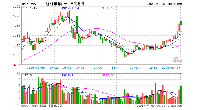 1月7日,智能汽车ETF汇添富(159795)跌0.78%,成交额681.84万元。当日份额增加100.00万份,最新份额为3516.95万份,近20个交易日份额减少100.00万份。最新资产净值计算值为4049.06万元。