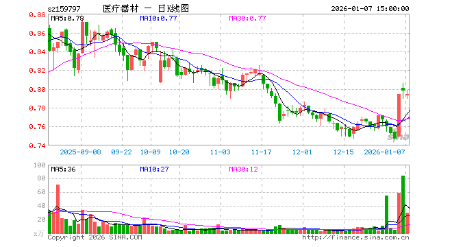 1月7日,医疗器械ETF基金(159797)跌0.50%,成交额2347.98万元。当日份额减少1800.00万份,最新份额为4.19亿份,近20个交易日份额增加3600.00万份。最新资产净值计算值为3.33亿元。