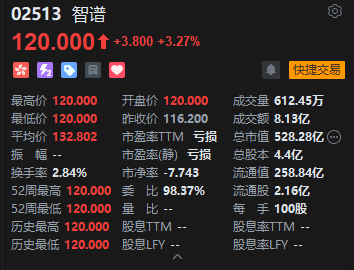 “全球大模型第一股”智谱(股票代码:02513.HK)今日正式登陆港交所主板。公司股票开盘报120港元,较每股116.20港元的发行价上涨3.27%。不计手续费,每手100股可盈利380港元。此前暗盘交易中,该股收涨6.02%至123.2港元。