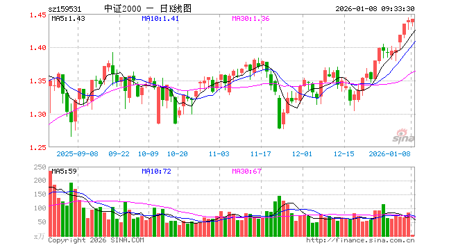 1月8日,中证2000ETF(159531)开盘跌0.21%,报1.437元。中证2000ETF(159531)重仓股方面,仕佳光子开盘跌0.99%,华胜天成涨1.39%,每日互动涨0.86%,汉威科技涨0.27%,宏创控股跌0.72%,东土科技涨6.51%,永鼎股份涨0.04%,信息发展跌0.09%,华建集团跌1.10%,海立股份跌1.06%。