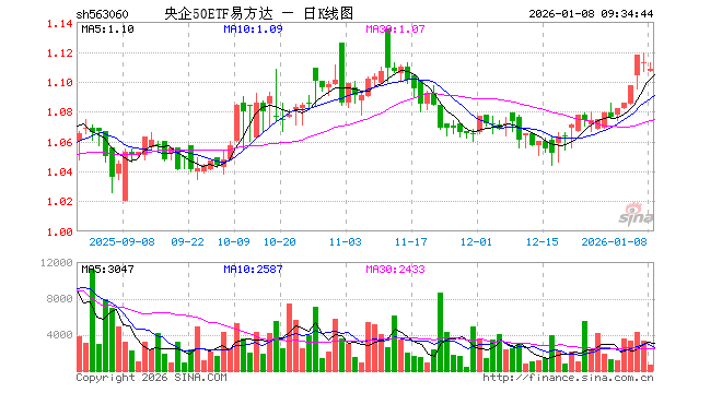 1月8日,央企50ETF易方达(563060)开盘跌0.54%,报1.107元。央企50ETF易方达(563060)重仓股方面,长江电力开盘涨0.00%,中国神华涨0.00%,海康威视跌0.20%,中国建筑跌0.19%,中国电信涨0.00%,中国移动涨0.00%,国电南瑞涨0.00%,中国石油跌0.10%,中国中车跌0.29%,中远海控跌0.07%。