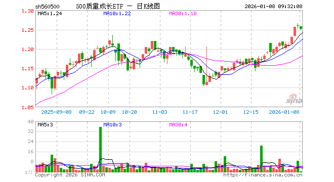 500质量成长ETF(560500)业绩比较基准为中证500质量成长指数收益率,管理人为鹏扬基金管理有限公司,基金经理为施红俊,成立(2021-08-04)以来回报为26.01%,近一个月回报为8.17%。