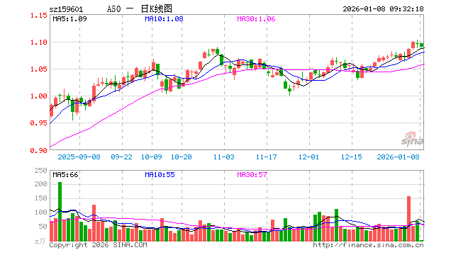 1月8日,A50ETF(159601)开盘涨0.00%,报1.096元。A50ETF(159601)重仓股方面,宁德时代开盘跌0.81%,紫金矿业跌1.42%,工业富联涨0.25%,贵州茅台跌0.00%,海光信息涨1.46%,寒武纪涨1.01%,比亚迪跌0.41%,恒瑞医药涨1.80%,立讯精密跌0.92%,中际旭创跌1.37%。