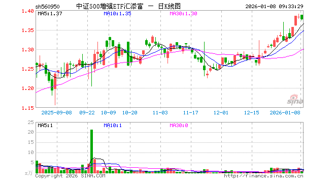 1月8日,中证500增强ETF汇添富(560950)开盘涨0.29%,报1.387元。中证500增强ETF汇添富(560950)重仓股方面,东吴证券开盘跌0.53%,胜宏科技跌0.07%,华工科技涨0.96%,深科技跌0.56%,长江证券跌1.03%,神火股份跌1.10%,科沃斯涨0.02%,广联达跌0.31%,亨通光电涨0.04%,高德红外涨0.43%。