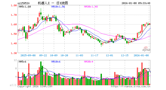 1月8日,机器人ETF易方达(159530)开盘跌0.13%,报1.594元。机器人ETF易方达(159530)重仓股方面,双环传动开盘跌0.28%,科沃斯涨0.02%,石头科技涨0.00%,绿的谐波跌0.98%,机器人涨0.33%,拓普集团跌0.40%,鸣志电器跌0.07%,埃斯顿涨0.59%,汇川技术涨0.47%,拓斯达涨0.62%。
