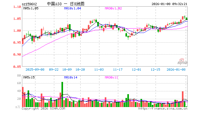 1月8日,中国A50ETF(159602)开盘跌0.19%,报1.052元。中国A50ETF(159602)重仓股方面,宁德时代开盘跌0.81%,紫金矿业跌1.42%,工业富联涨0.25%,贵州茅台跌0.00%,海光信息涨1.46%,寒武纪涨1.01%,比亚迪跌0.41%,恒瑞医药涨1.80%,立讯精密跌0.92%,中际旭创跌1.37%。